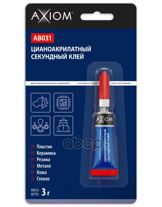 Клей цианоакрилатный секундный 3г AXIOM арт. AB031 интересное: