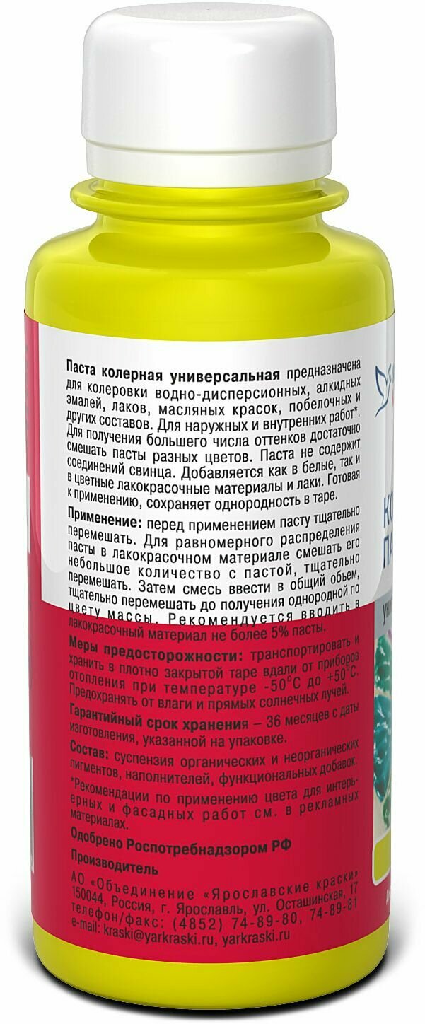 Ярославские краски Паста колерная универсальная желтый, бутылка 0,1 л О03809
