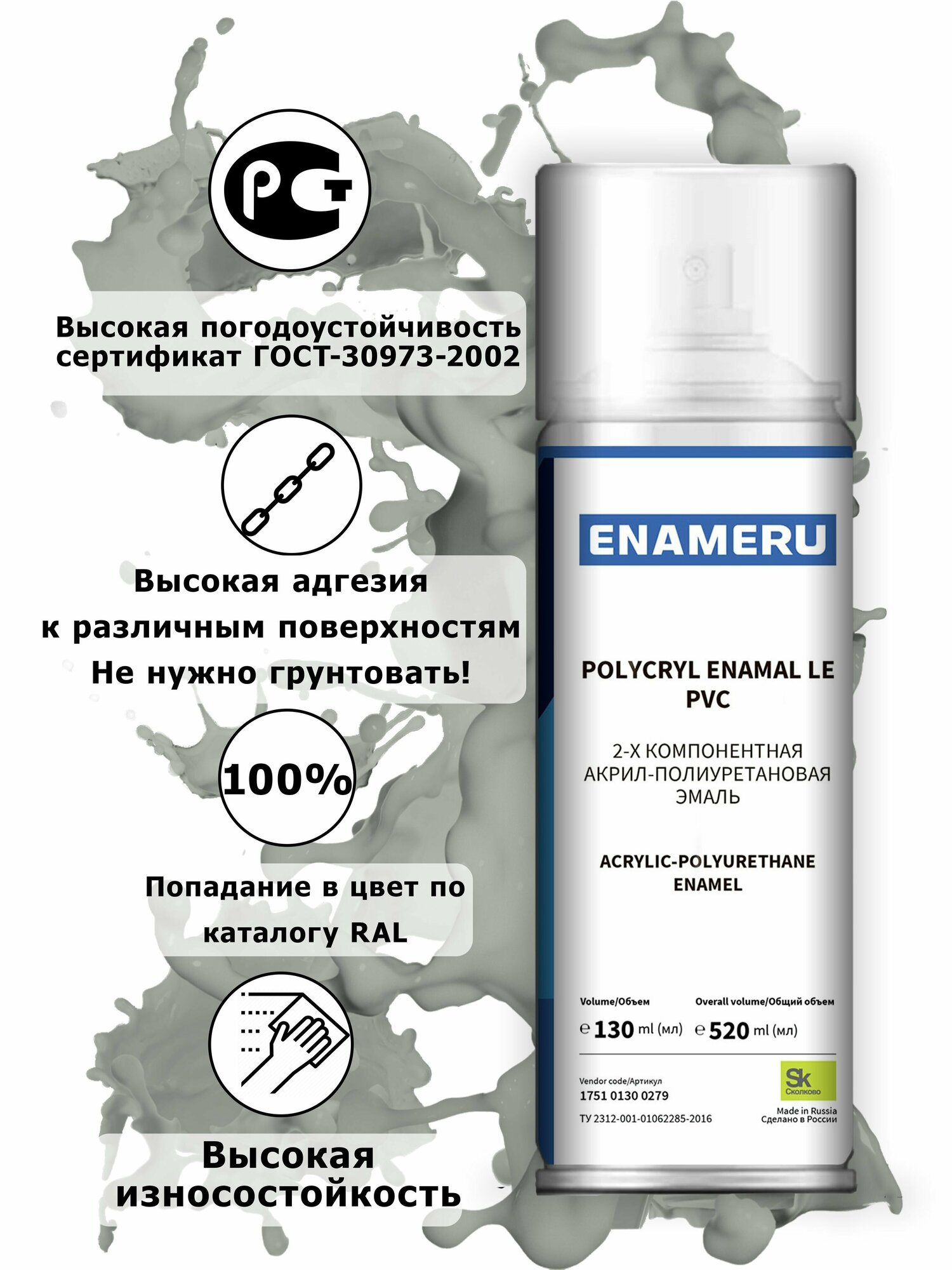 Структурная краска для ПВХ, пластика, окон Энамеру, Быстросохнущая, Акрил-полиуретановая, Полуматовая, 0.52 л, Телегрей 4 RAL 7047
