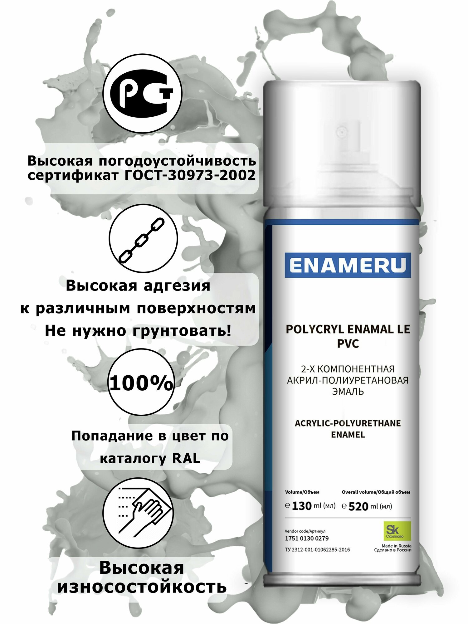 Структурная краска для ПВХ, пластика, окон Энамеру, Быстросохнущая, Акрил-полиуретановая, Полуматовая, 0.52 л, Серо-белый RAL 9002