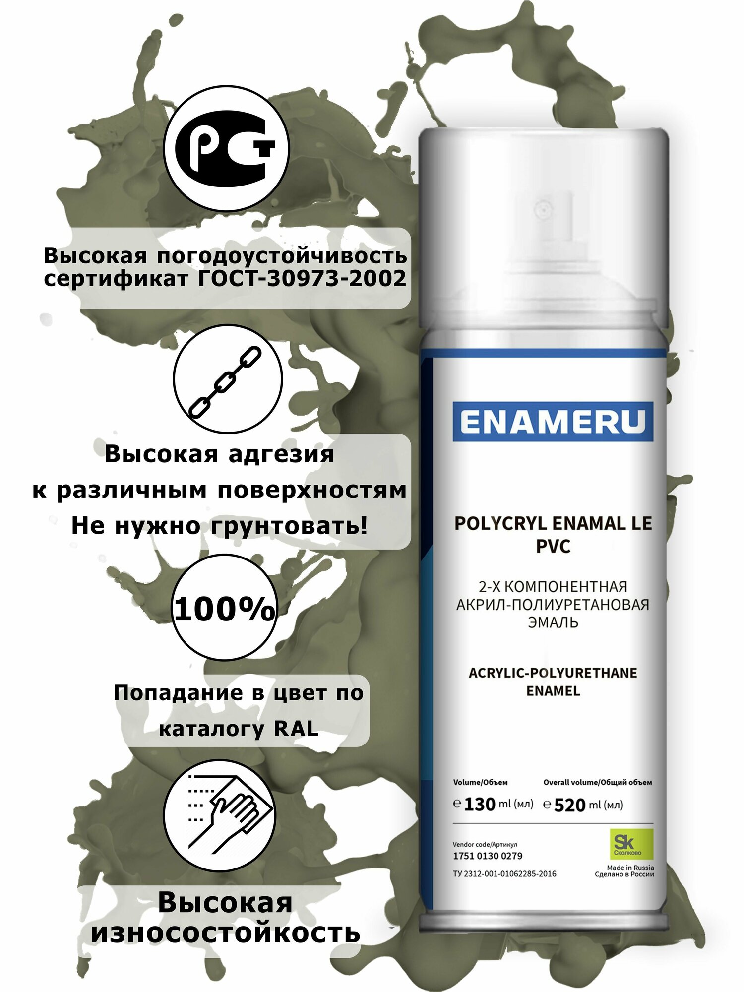 Структурная краска для ПВХ, пластика, окон Энамеру, Быстросохнущая, Акрил-полиуретановая, Полуматовая, 0.52 л, Оливково-серый RAL 7002