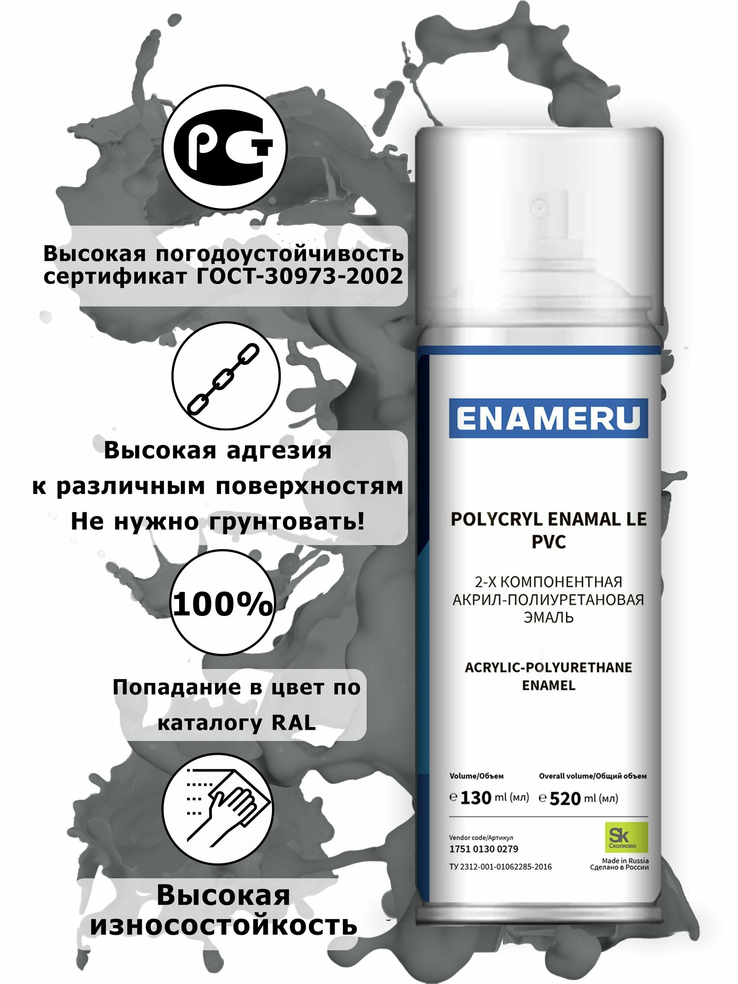 Структурная краска для ПВХ, пластика, окон Энамеру, Быстросохнущая, Акрил-полиуретановая, Полуматовая, 0.52 л, Сигнальный серый RAL 7004