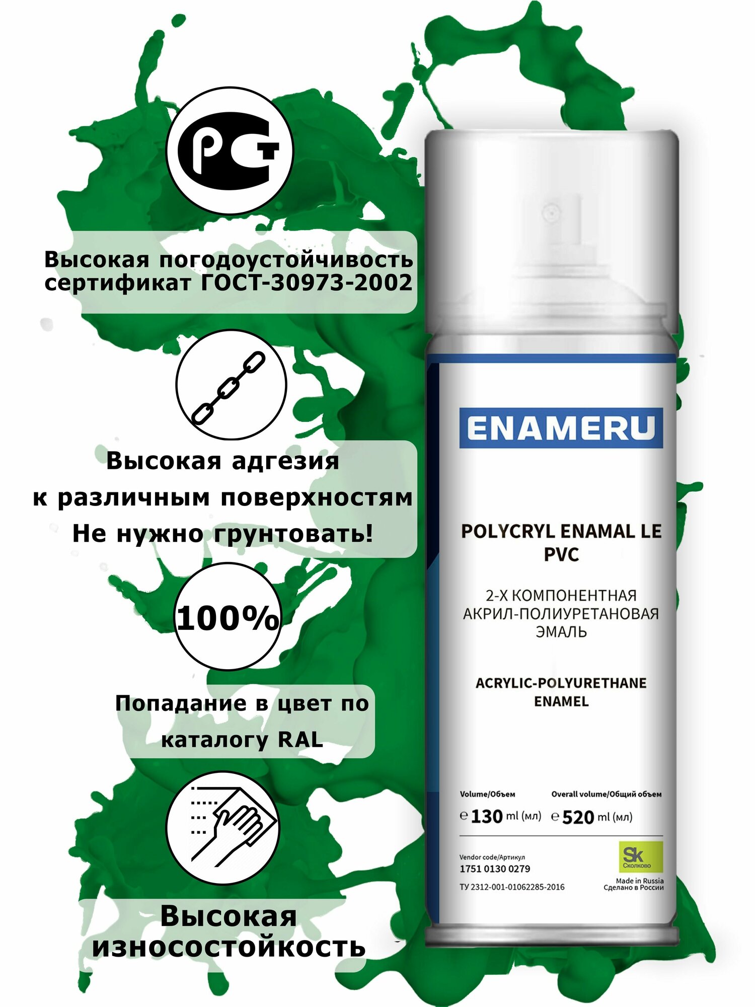 Купить Структурная краска для ПВХ, Пластика Энамеру, Акрил-полиуретановая, Полуматовая, Майский зеленый RAL 6017, 0.52л