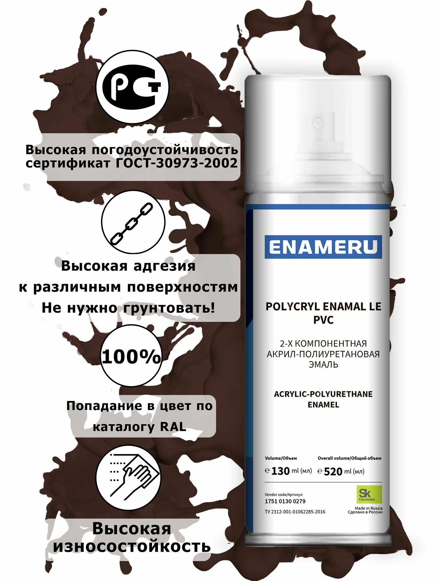 Структурная краска для ПВХ, пластика, окон Энамеру, Быстросохнущая, Акрил-полиуретановая, Полуматовая, 0.52 л, Шоколадно-коричневый RAL 8017