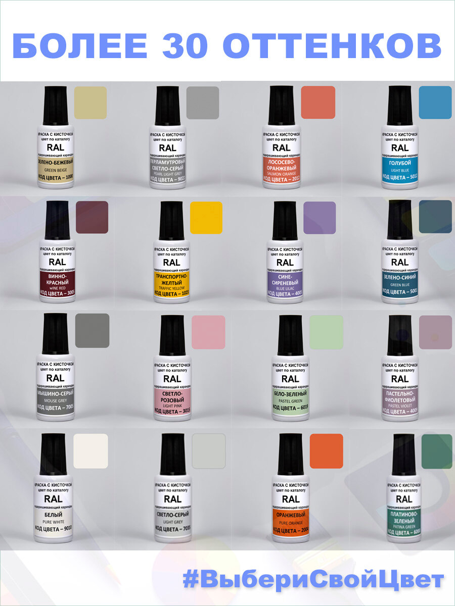 | Дополнительная информация | Краска для сколов во флаконе с кисточкой повторяет базовый оттенок эмали RAL |