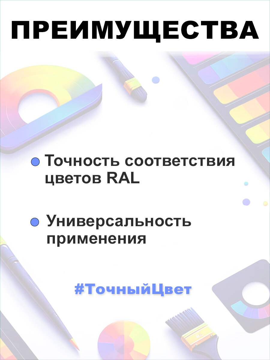 | Цвет товара | Black grey RAL 7021, Blue lilac RAL 4005, Chocolate brown RAL 8017, Graphite black RAL 9011, Grey Beige RAL 1019, Grey white RAL 9002, Mouse grey RAL 7005, Pastel green RAL 6019, RAL 1000, RAL 1023 желтый, RAL 2004 оранжевый, RAL 2012, RAL 3005 винно-красный, RAL 3015, RAL 4009, RAL 6000, RAL 7022, RAL 7024 графит, RAL 7035 светло-серый, RAL 8019 серо-коричневый, RAL 9005 черный, RAL 9022, RAL-7047 телегрей 4, Белый RAL 9010, Серебристая RAL 9006, Темно-серая RAL 7016, голубой Ral 5012, золото RAL 1036, темно-синий RAL 5001 |