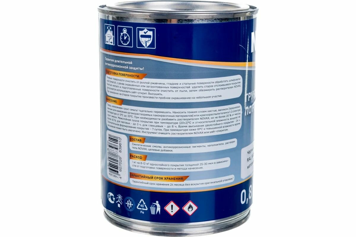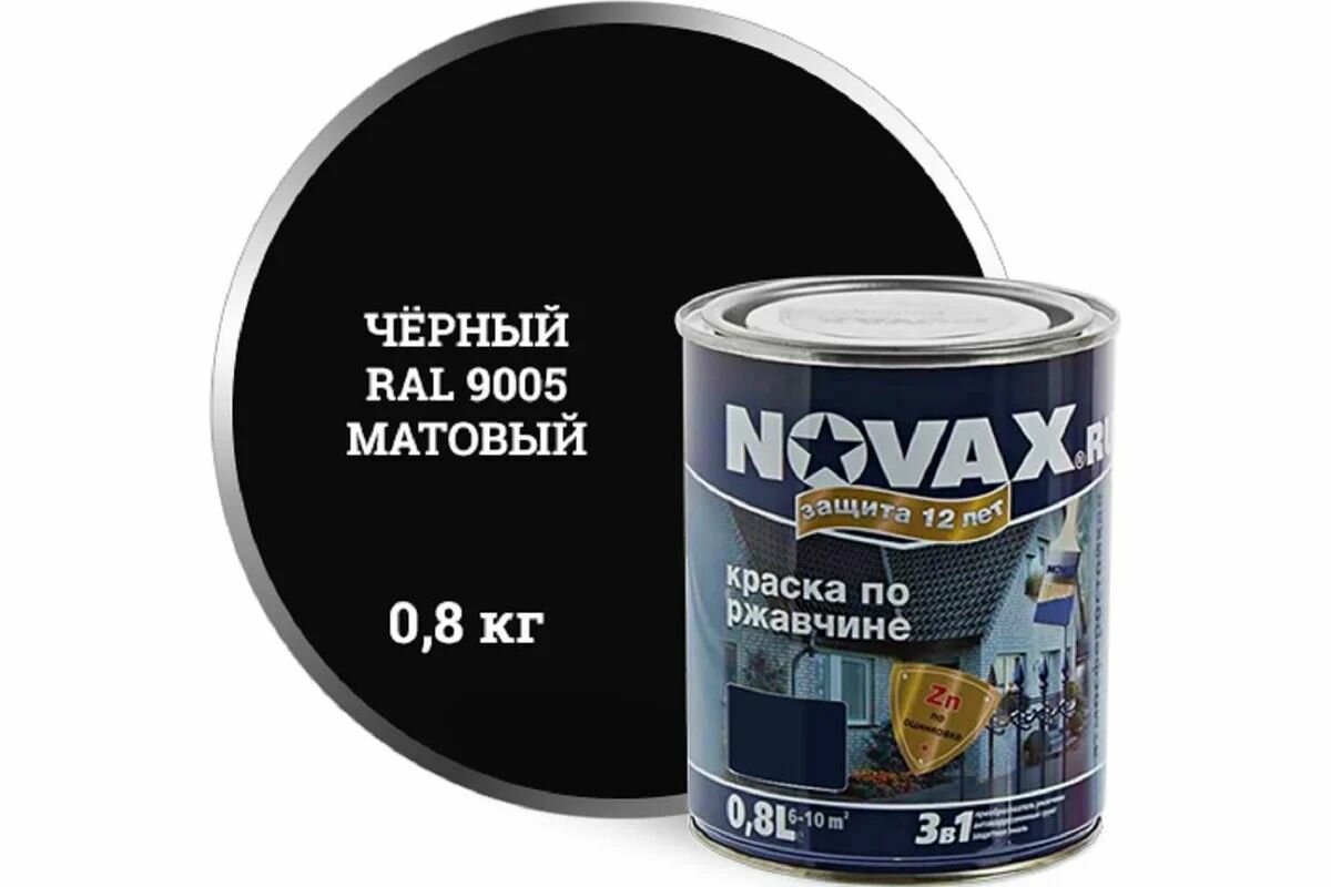 Купить Грунт-эмаль Goodhim NOVAX 3в1 черный RAL 9005, матовая, 0,8 кг 39610