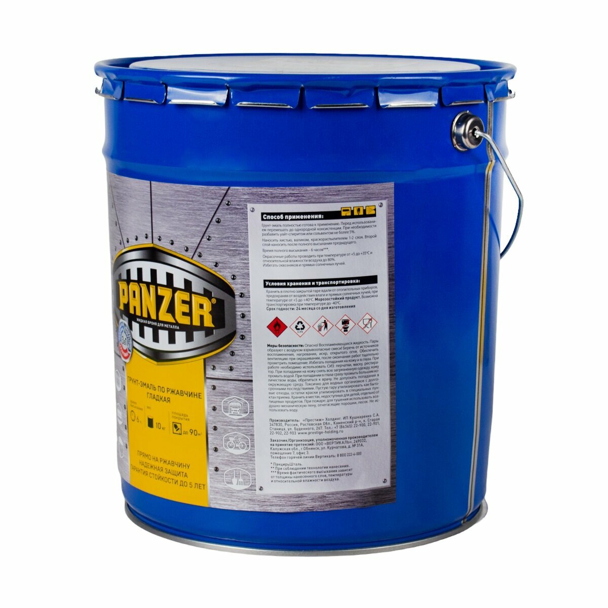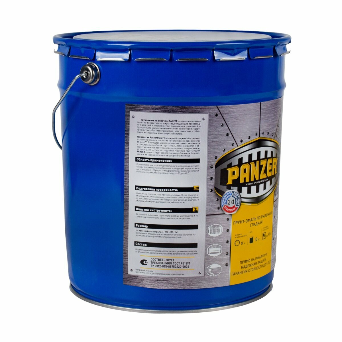 Грунт- эмаль ПО ржавчине гладкая "PANZER" голубая 5 КГ, полуглянцевая, 1ШТ, жестяная банка