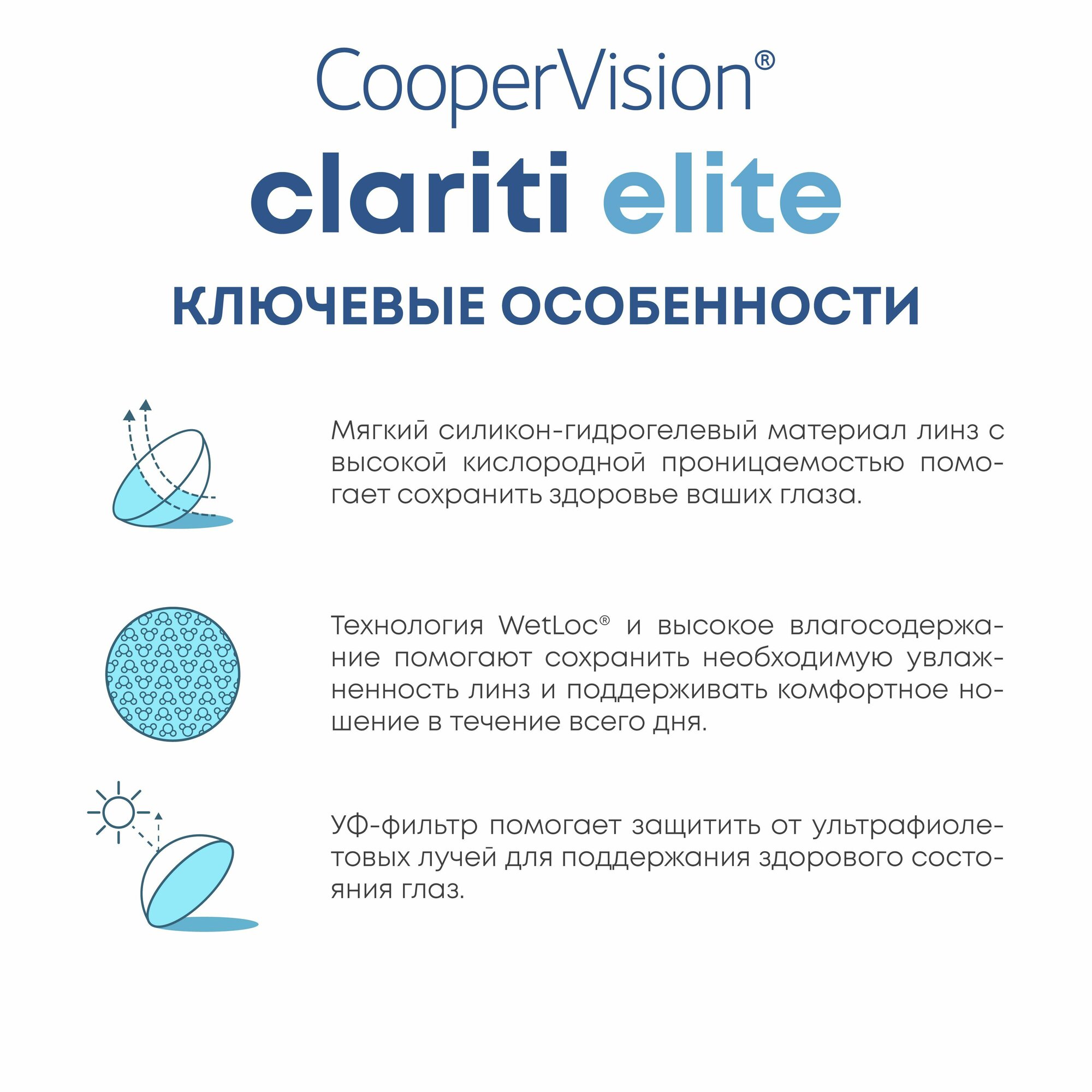 Ежемесячные контактные линзы CooperVision Clariti Elite 6 pk (BC 8.6; R -9.00)