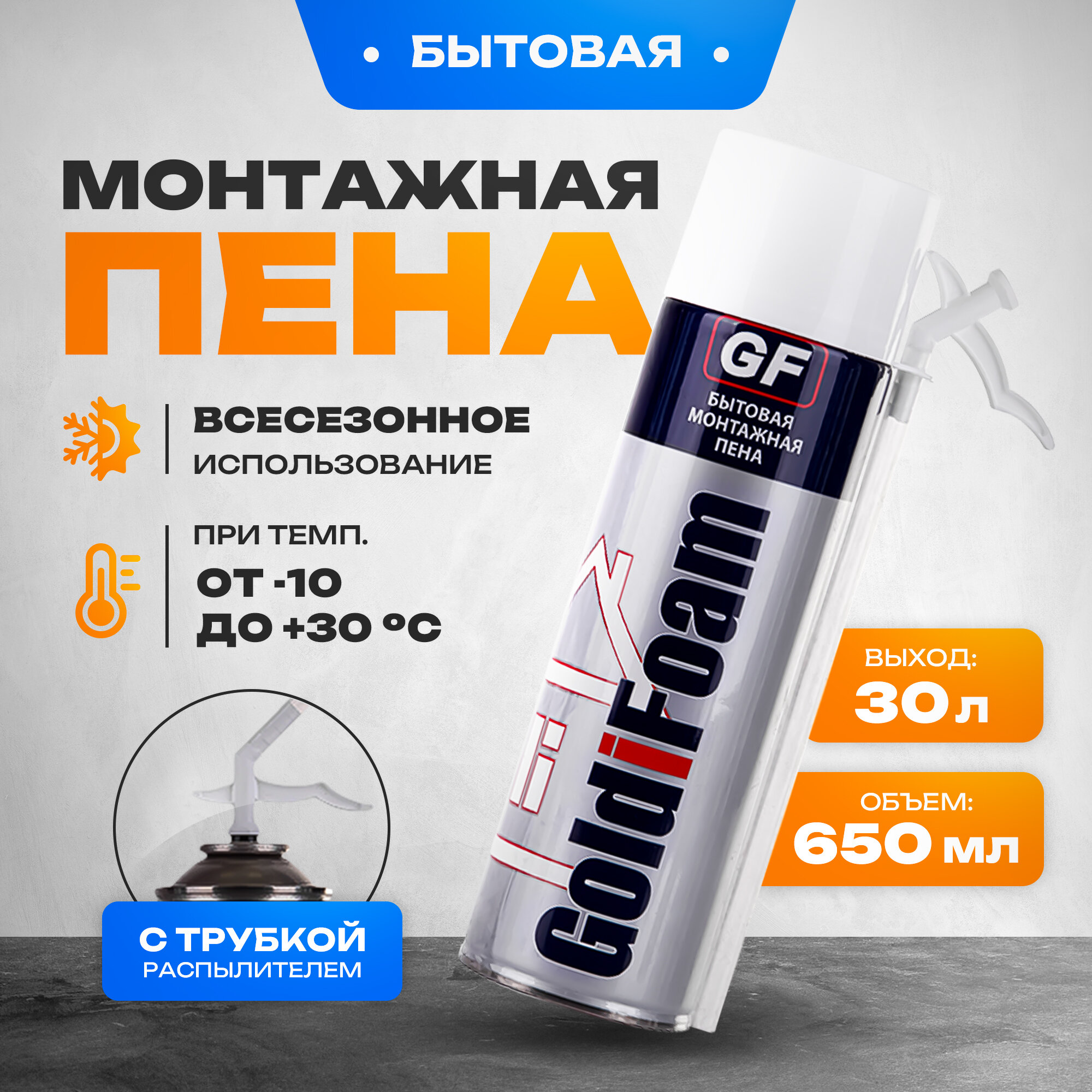 Монтажная бытовая пена Goldifoam mini с трубкой для выпуска пены, 650 мл., всесезонная, 1 шт.