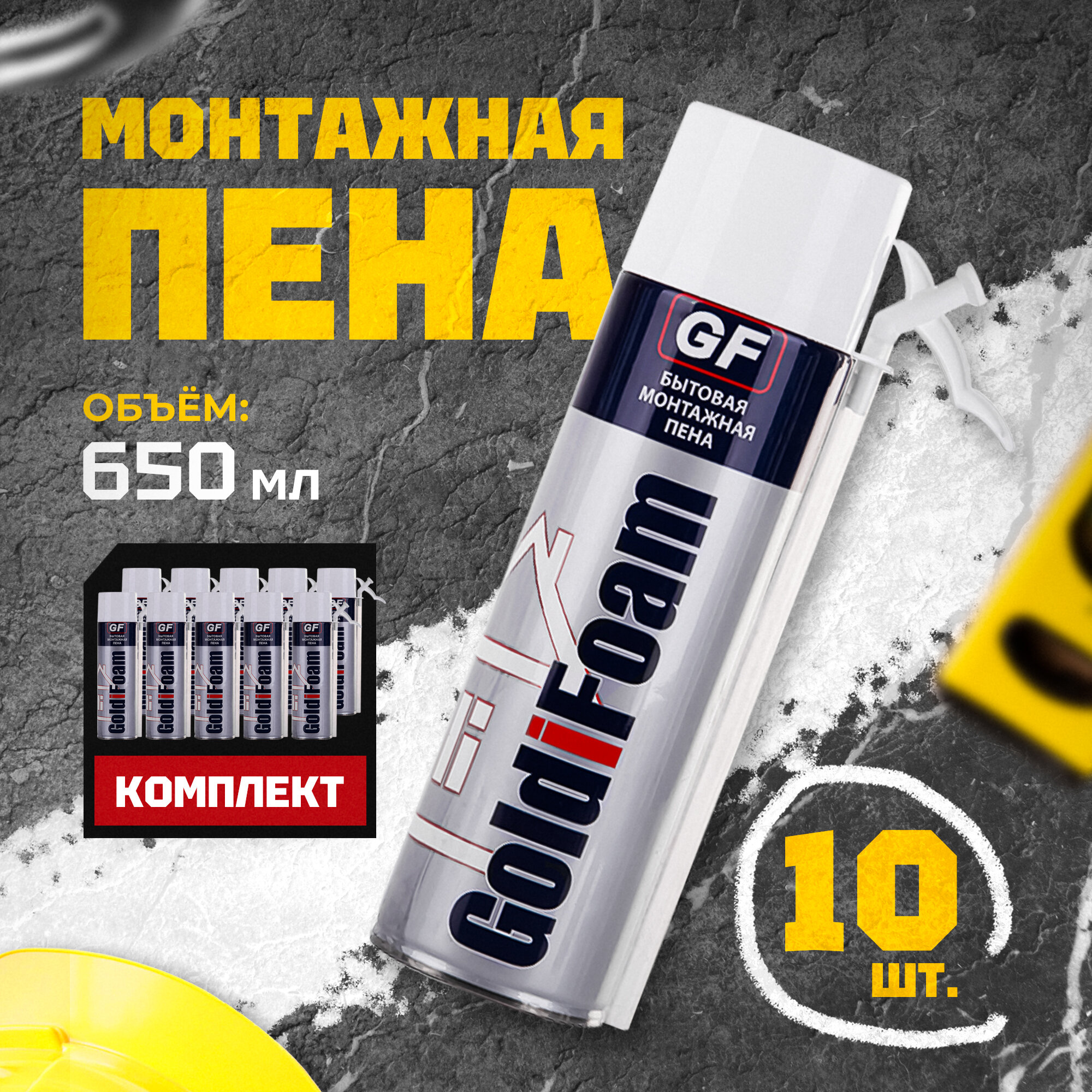 Монтажная бытовая пена Goldifoam mini с трубкой для выпуска пены, 650 мл., всесезонная, 10 шт.