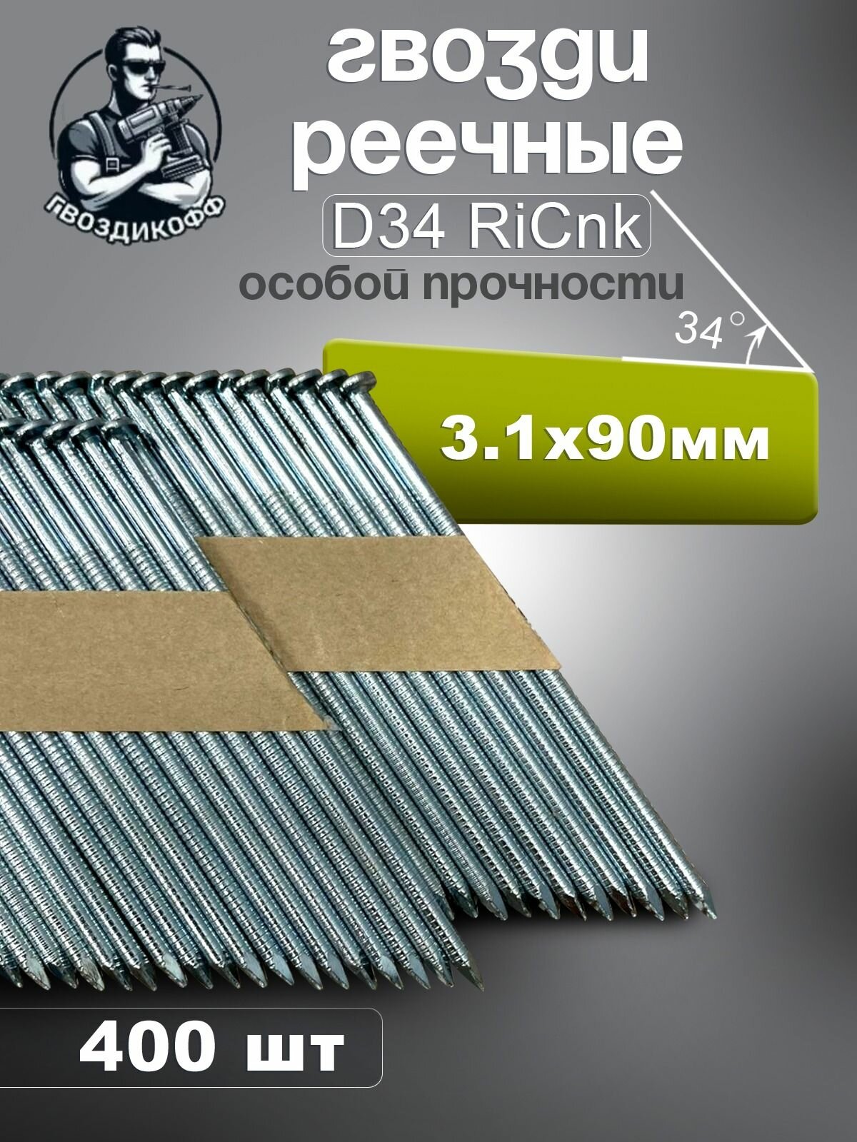 Купить Гвозди реечные D34 3,1/90 мм оцинкованные с кольцевой накаткой RiCnk "Гвоздикофф", 400 шт