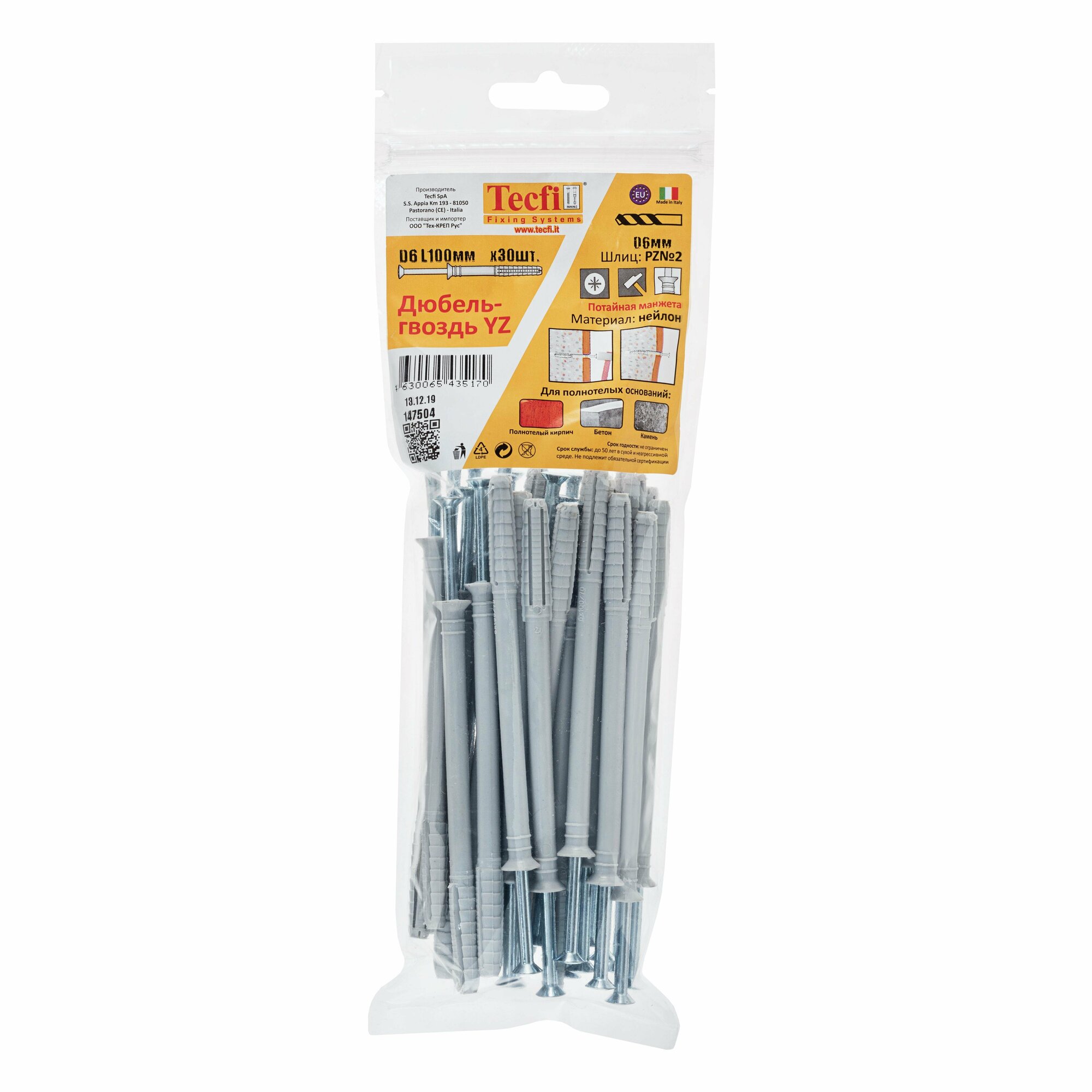 Дюбель-гвоздь Tecfi 6x100 (30 шт) (147504) пакет, YZ потайн. манжета нейлон 147504 интересное: