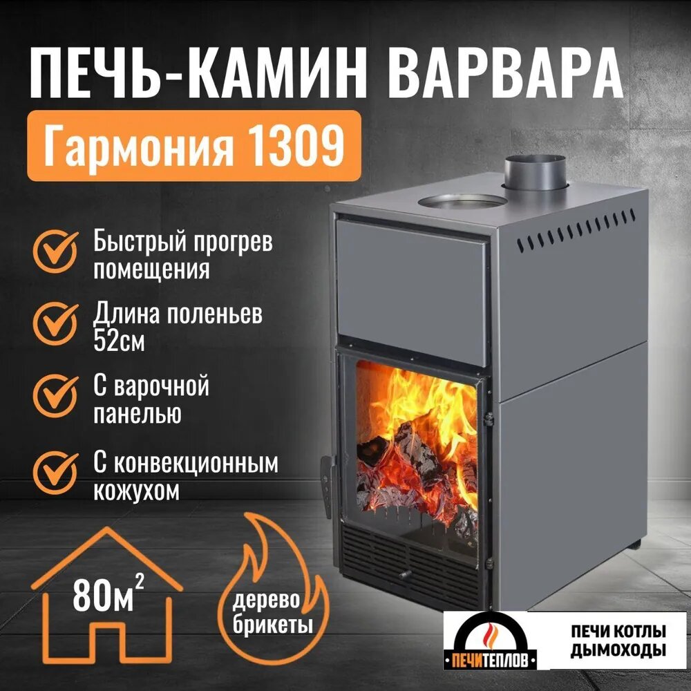 Печь дровяная отопительная Варвара гармония 1309 графит новый дизайн ! печь-камин варочная для дома и дачи, 12 кВт, 200 куб. м интересное: