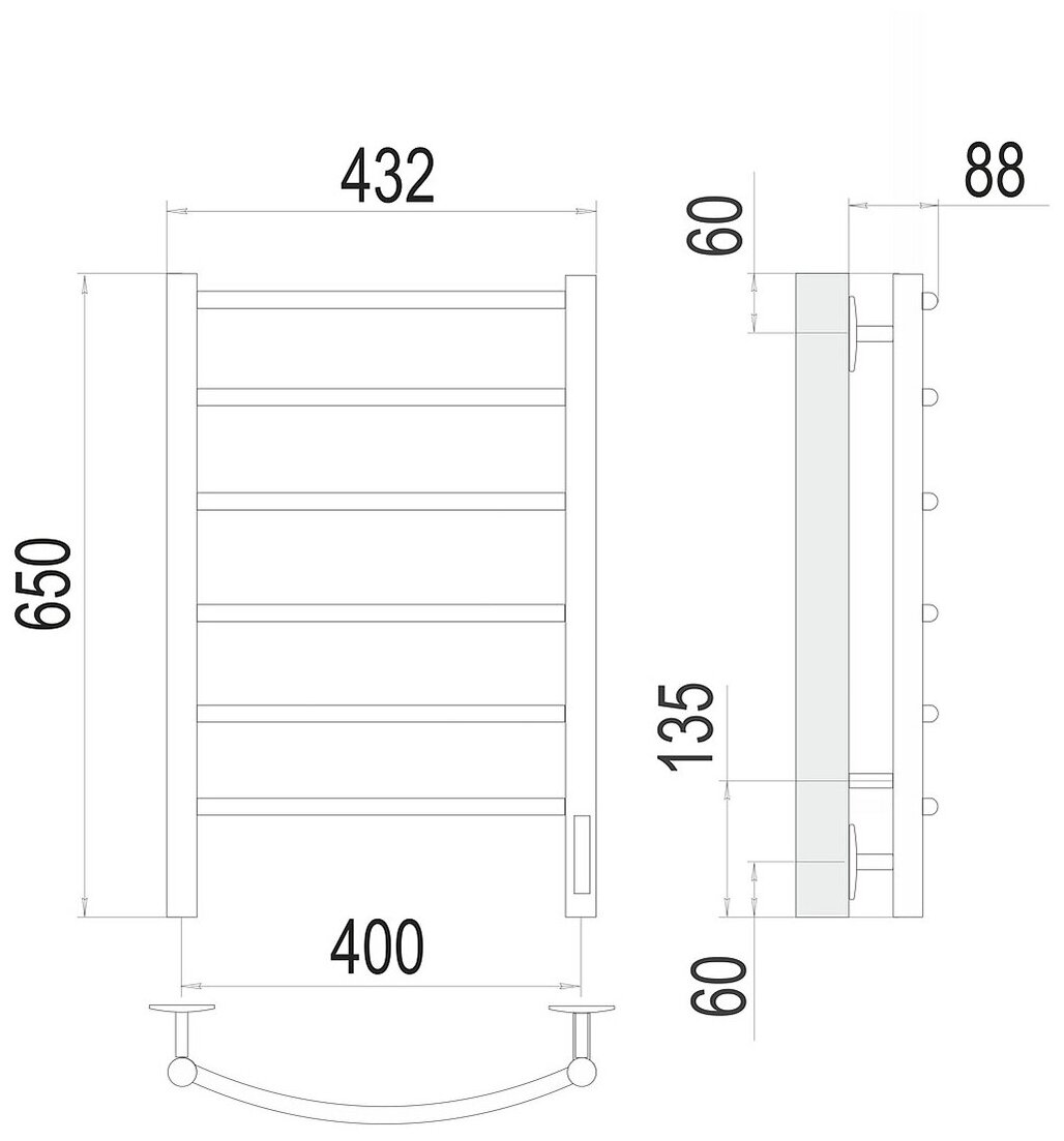 | Дополнительная информация | Полотенцесушитель, крепление телескопическое - 4шт, модуль скрытого подключения со съемной кабель-вилкой, паспорт изделия, гарантийный талон. |