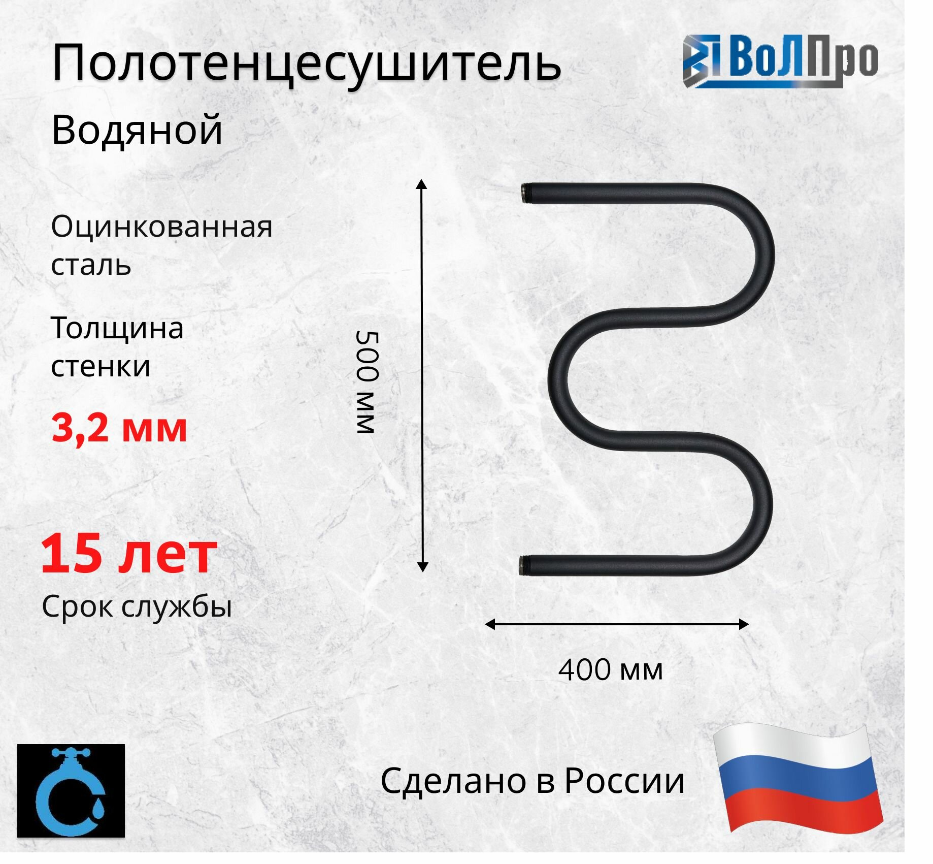 Полотенцесушитель "ВоЛПро" 50х60, черный матовый, водяной, с боковым подключением