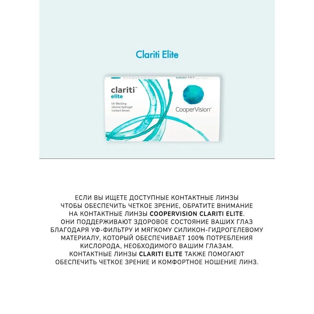 Купить "Контактные линзы CooperVision clariti elite (6 линз) -8.50 R 8.6, ежемесячные, прозрачные"