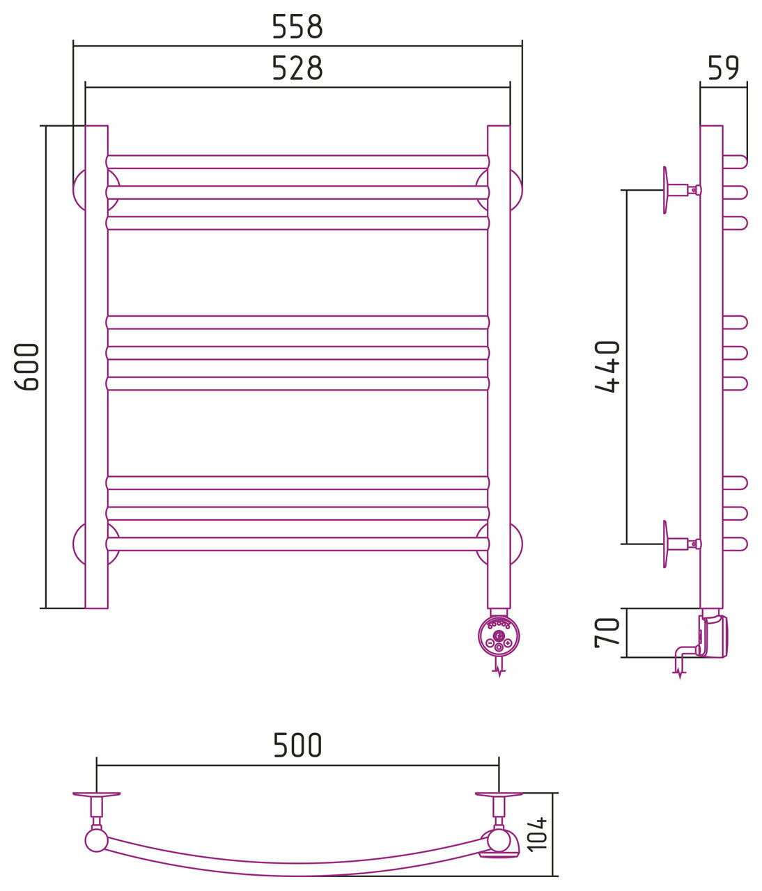 Полотенцесушитель электрический Стилье Формат 10 ТП 600х500 (3+3+3) Г16 Без покрытия 00510-6050