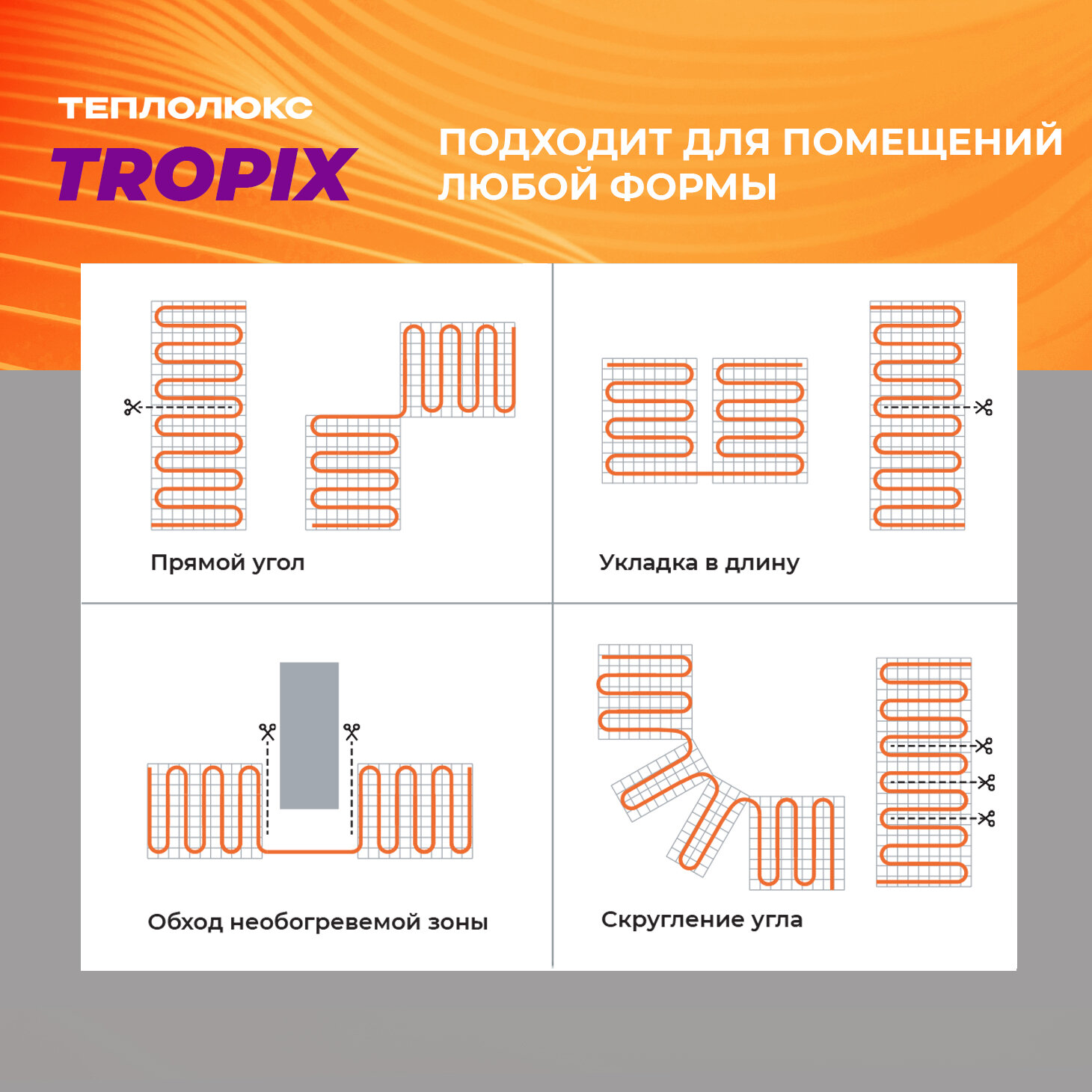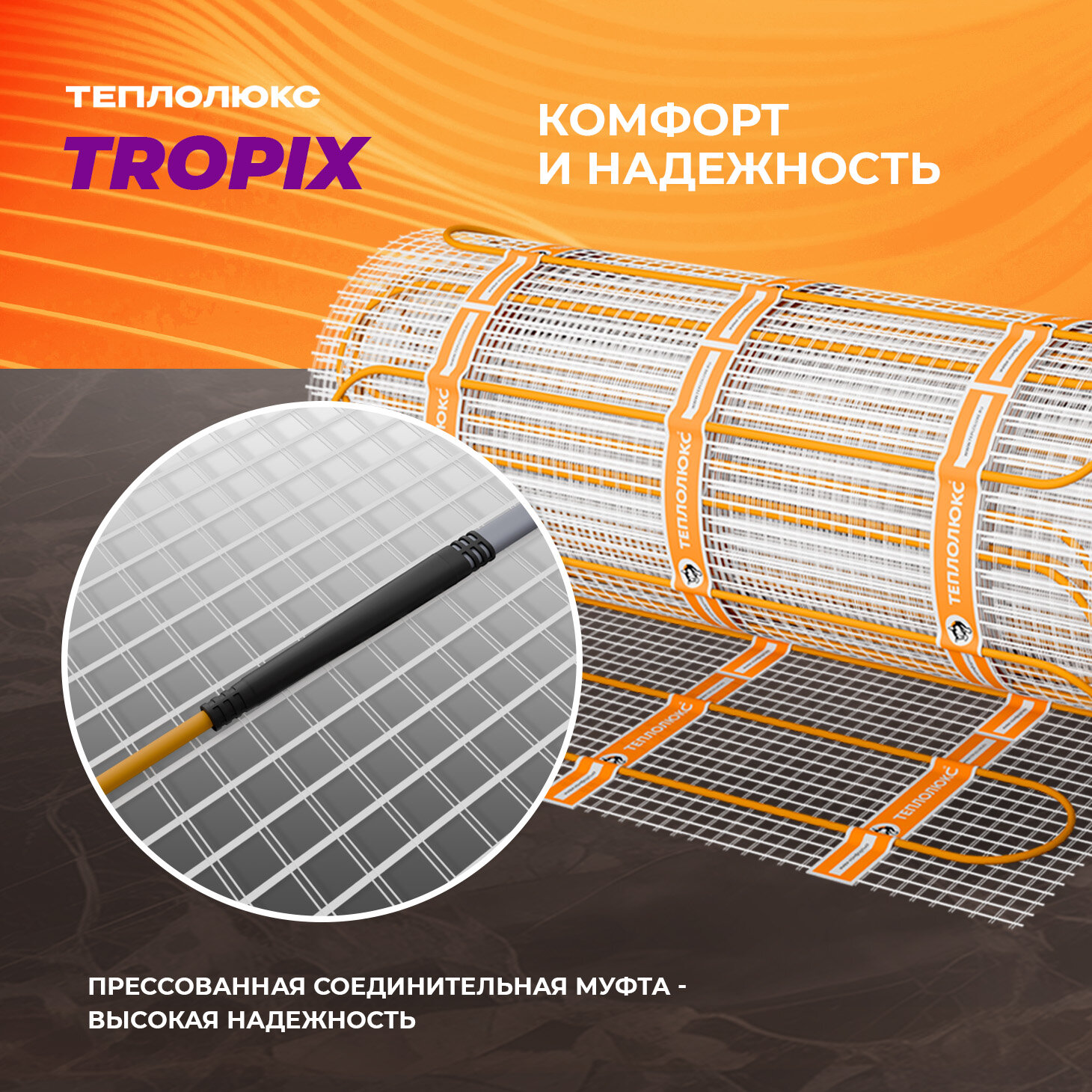 Теплый пол электрический под плитку, под ламинат Теплолюкс Tropix МНН 1280 Вт/8,0 кв. м.