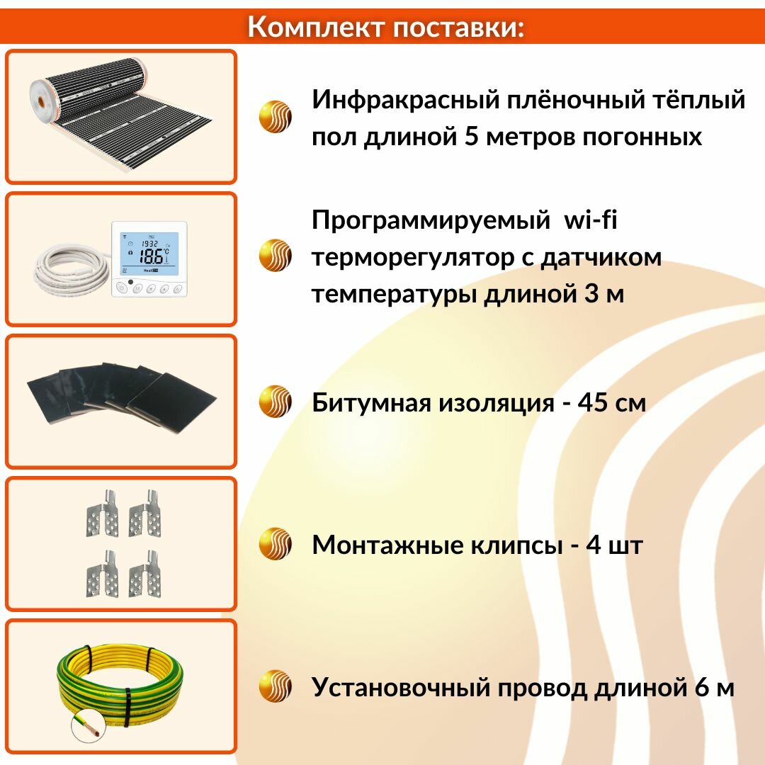 Пленочный электрический теплый пол под ламинат , линолеум , паркет 0,5 м. кв. с умным черным wi-fi терморегулятором. Инфракрасная пленка 0,5 м2