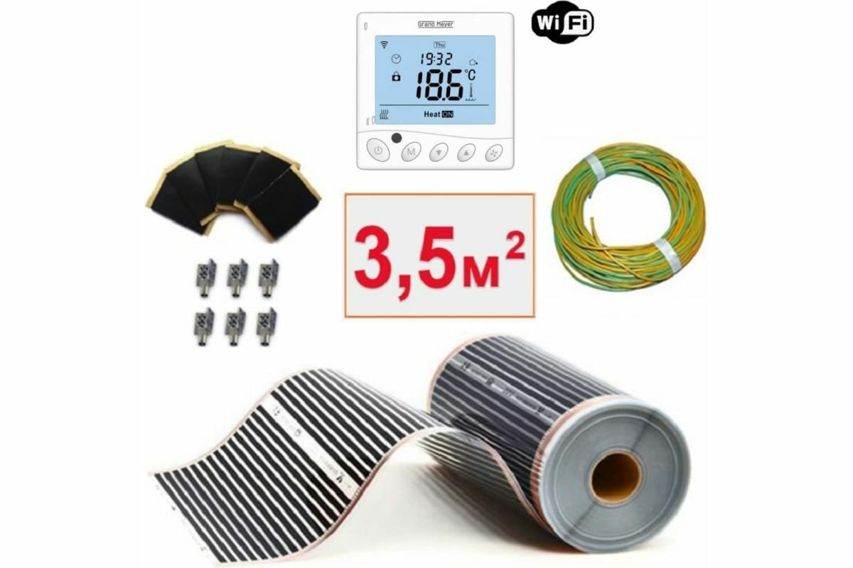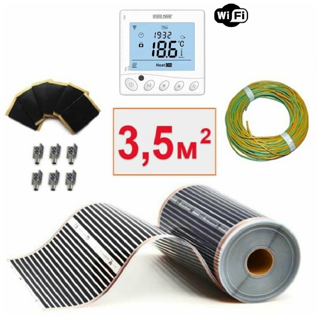 Пленочный электрический теплый пол под ламинат / линолеум / паркет 3,5м.кв. с wi-fi терморегулятором. Инфракрасная пленка 3,5 м2