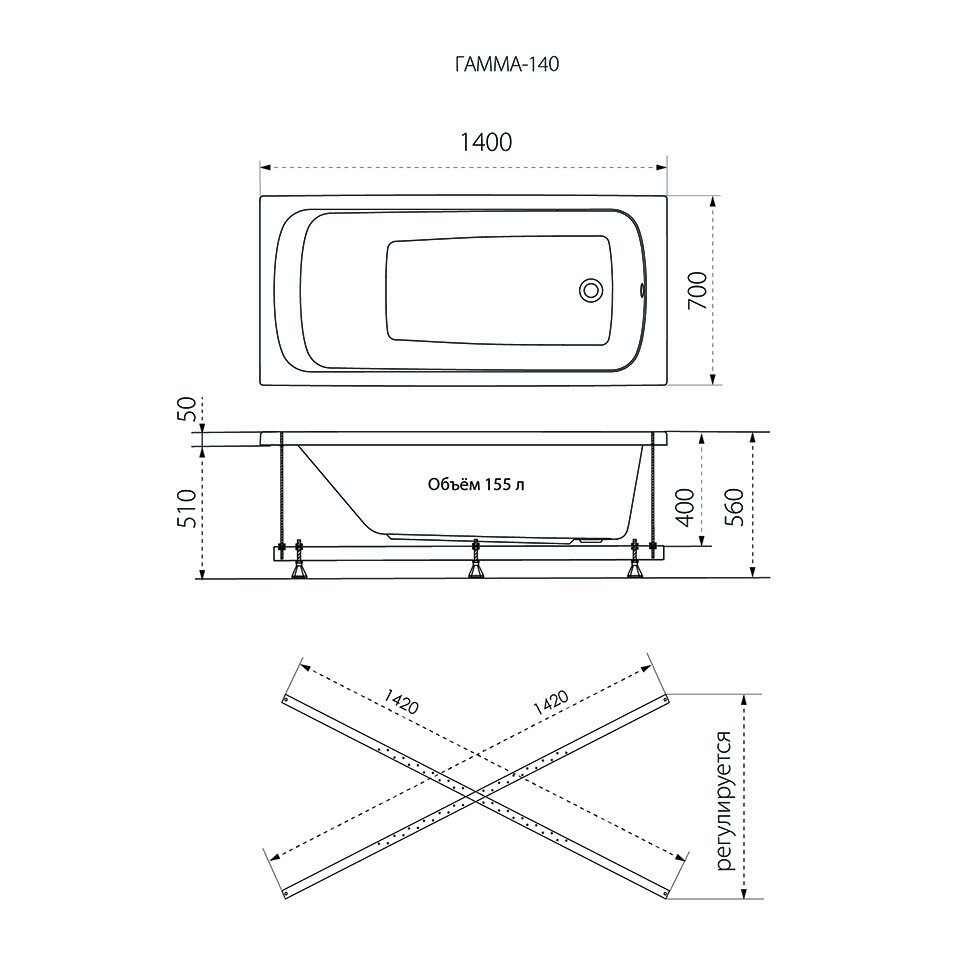 Ванна акриловая 1ACReal Gamma 140*70