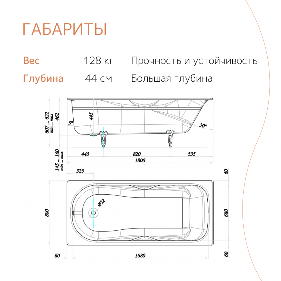 Чугунная ванна tempra Girona 180x80 см белая, глянцевая, с ножками интересное: