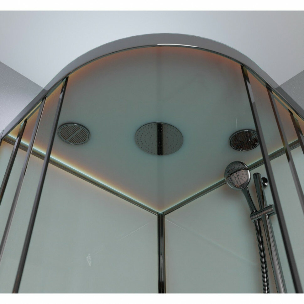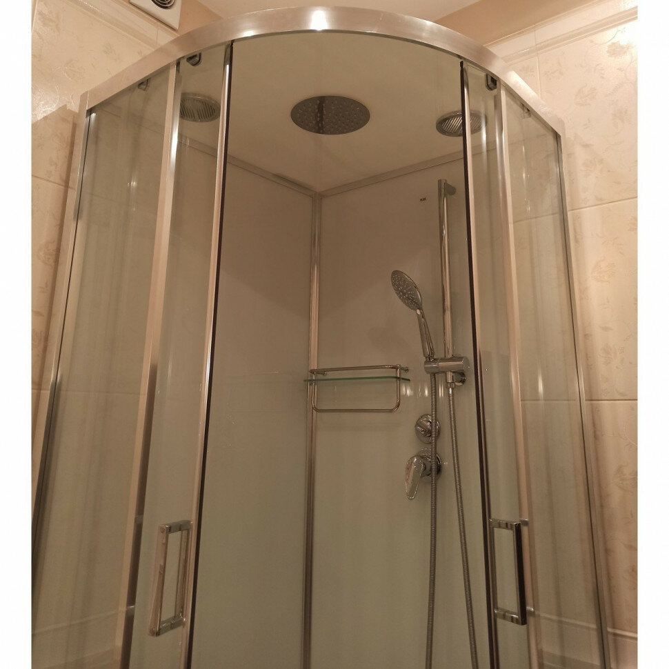 | Дополнительная информация | материал профилей: полированная сталь (полированный хром), колба сифона: ширина 90 мм (с ловушкой для волос и гидрозатвором), закалённые стёкла, безсиликоновая сборка, резьбовые соединения смесителя с душем, верхний душ (с резиновыми соплами от известков |