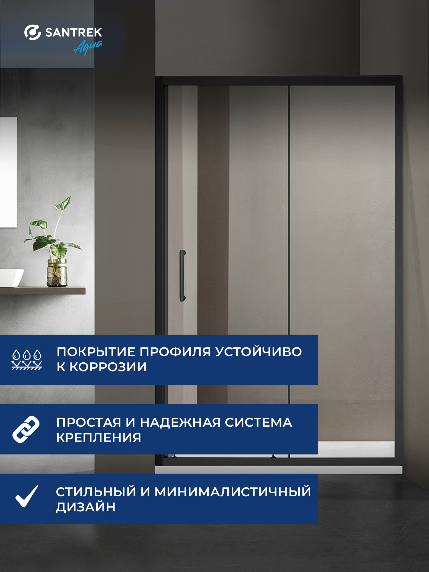 Душевое ограждение SANTREK AQUA Lea- DF-1000-C-Matt Black 1000*1850 Прямое стекло Прозр. 5мм, профиль Чёрный