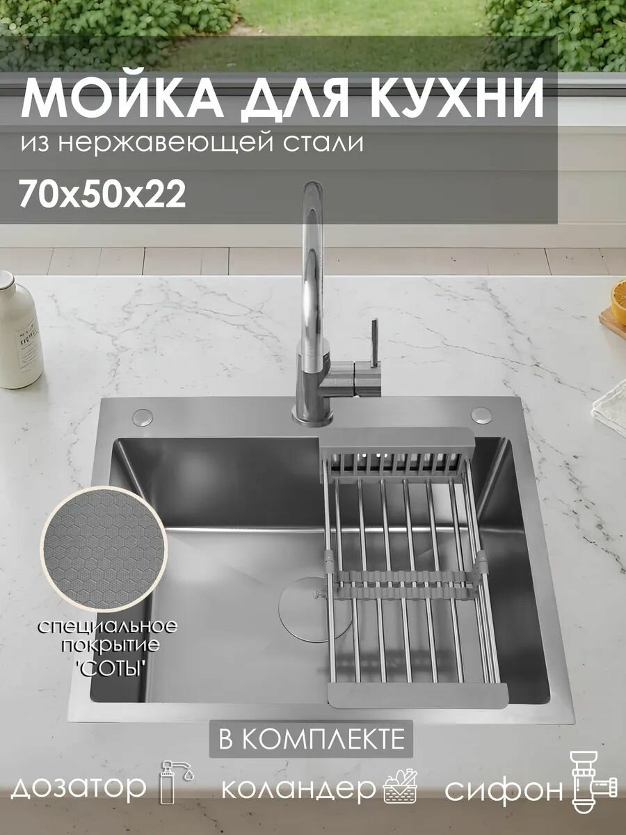 Мойка для кухни нержавеющая врезная 70х50 STATUS, цвет хром интересное: