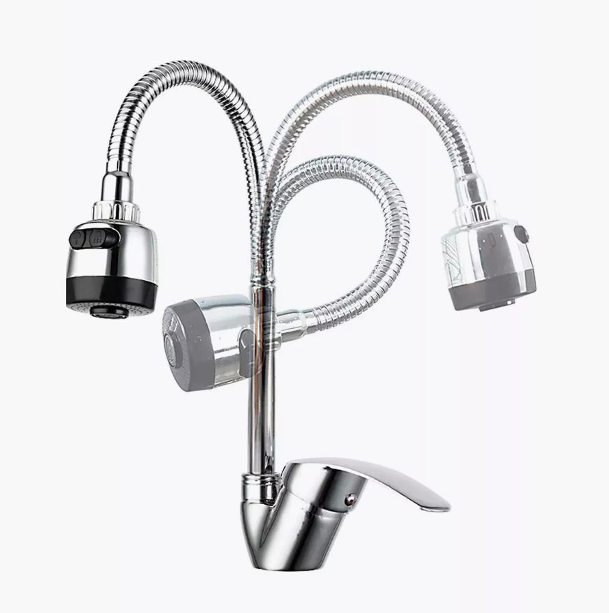 Купить Смеситель для кухни с гибким изливом, поворотный, 2 режима, хром