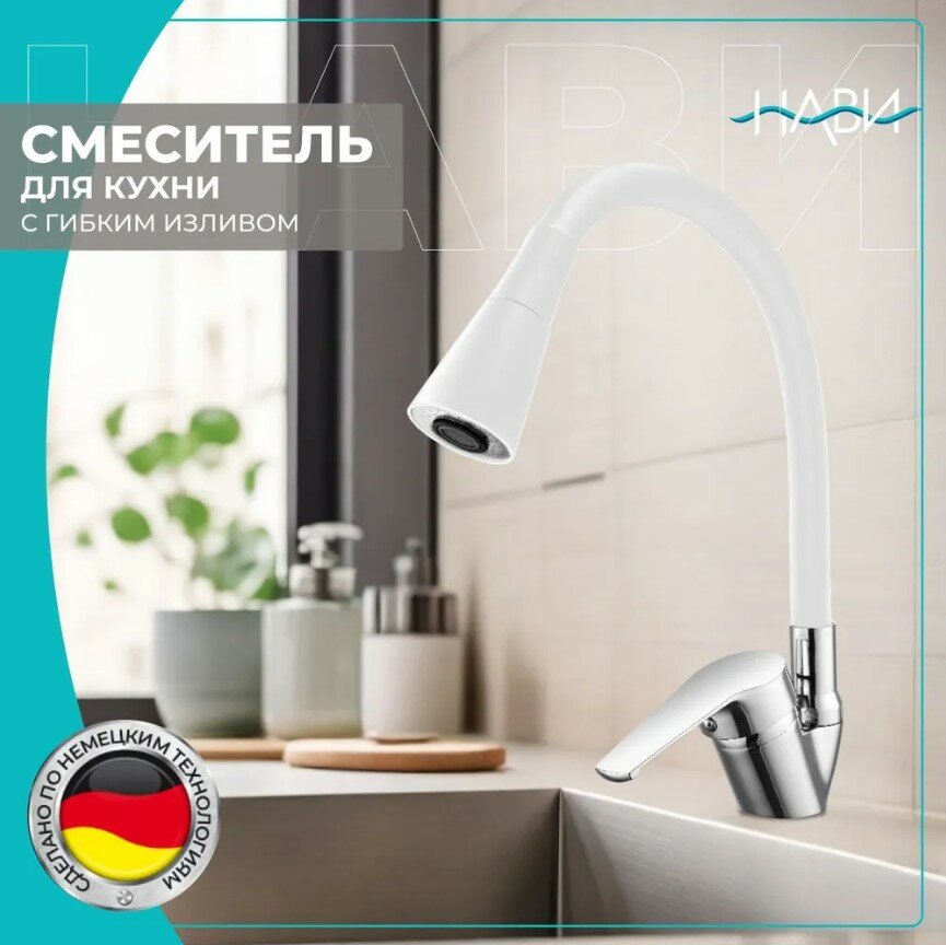 Смеситель для кухни с гибким изливом, для кухонной мойки, кран для кухни Dionis DNE8-KW-203, цвет: белый. без гибкой подводки.