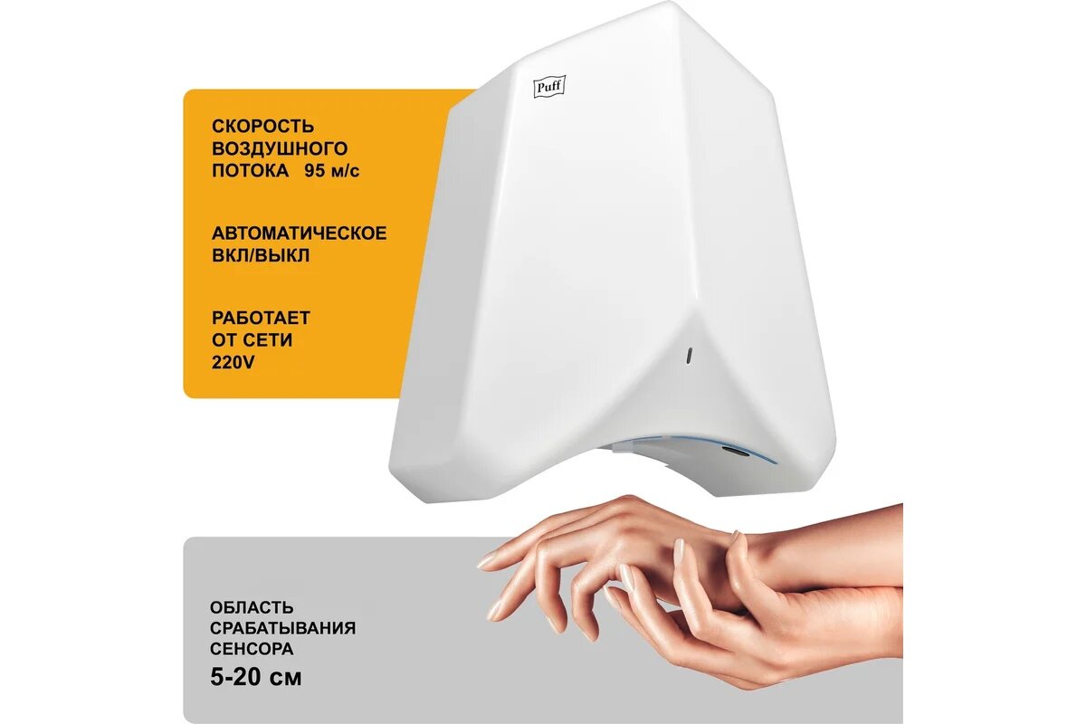 Купить Puff Электросушитель для рук "-8840", белый, 1,1 кВт, высокоскоростной 1401.325