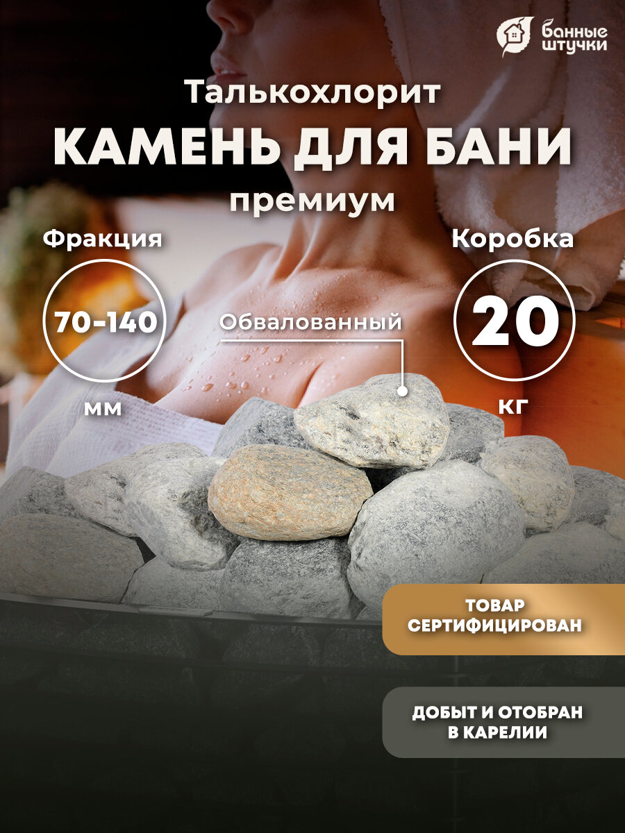 Камень "Талькохлорит" /для бани/сауны/парилки обвалованный, средняя фракция (70-140 мм), "Банные штучки" интересное: