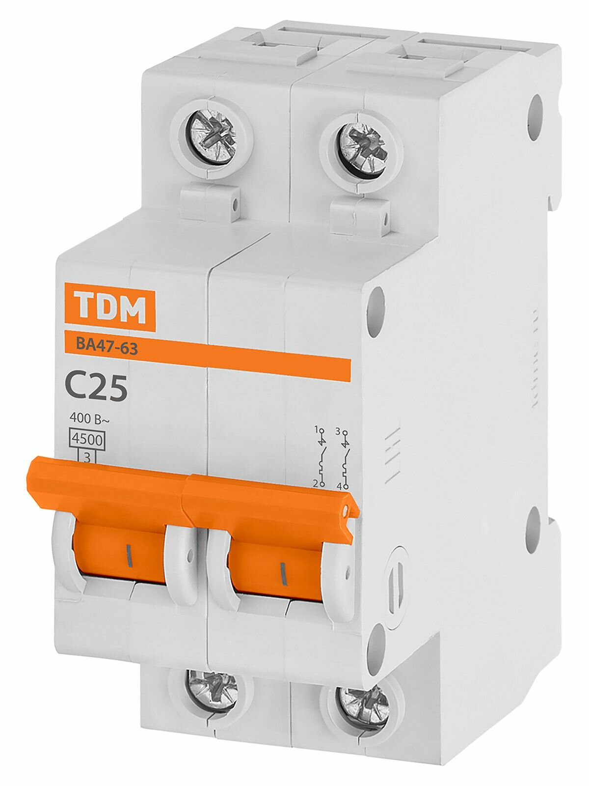 Автоматический выключатель TDM Electric ВА47-63 2P 25А характеристика C (комплект из 2 шт.)