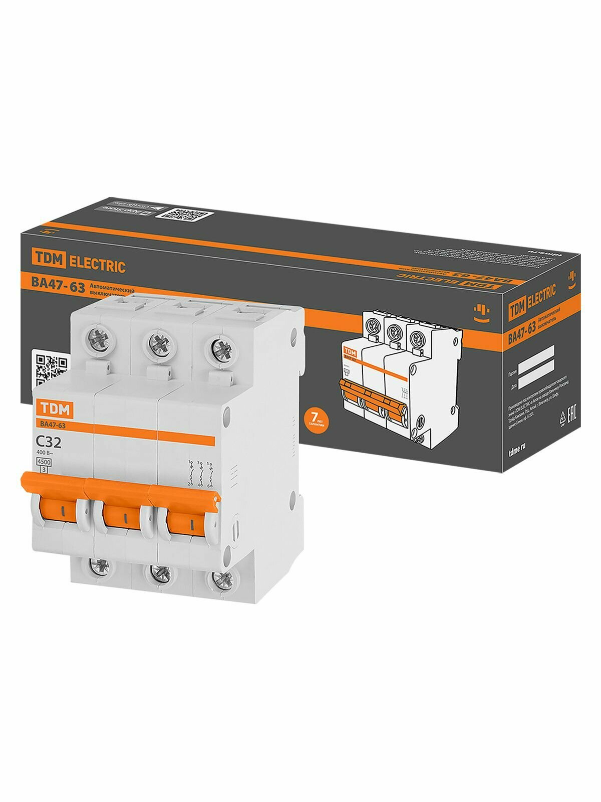 Выключатель автоматический Tdm Electric ВА47-63, 3Р, 32 А, 4,5 кА, тип C