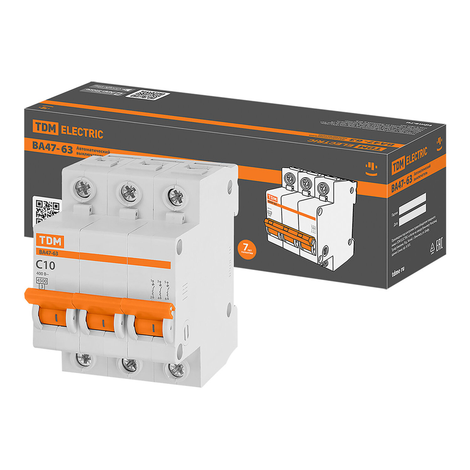 Автоматический выключатель TDM Electric ВА47-63 3P 10А (C) 4.5кА, SQ0218-0018