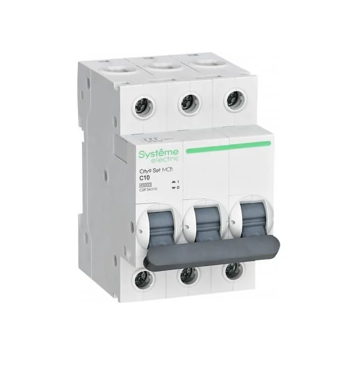 Автоматический выключатель 3-полюсный, 10А, 4.5kA (хар-ка C) City9 Systeme Electric, C9F34310