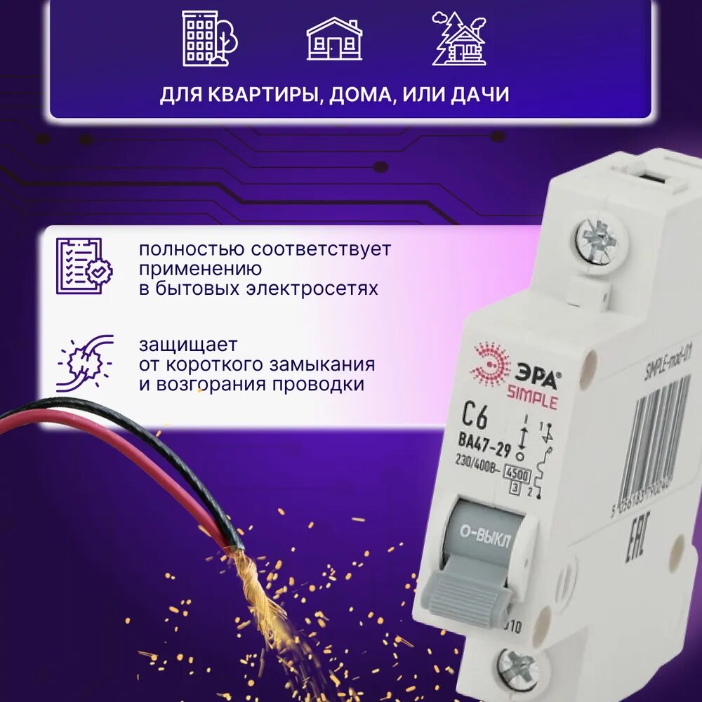 Выключатель автоматический модульный 1п C 6А 4.5кА ВА 47-29 SIMPLE-mod-01, ЭРА Б0039218 (1 шт.)