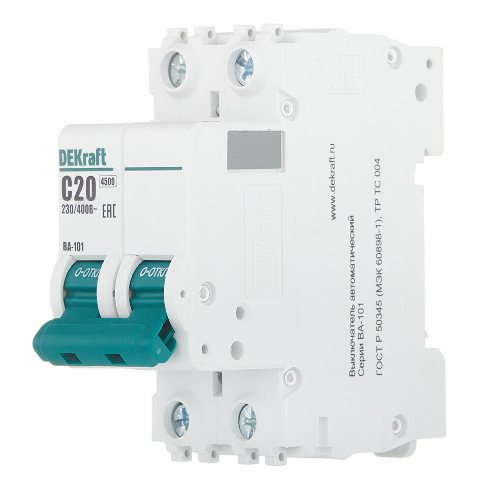 Выключатель автоматический Dekraft ВА-101 двухполюсный 20А С 4.5кА