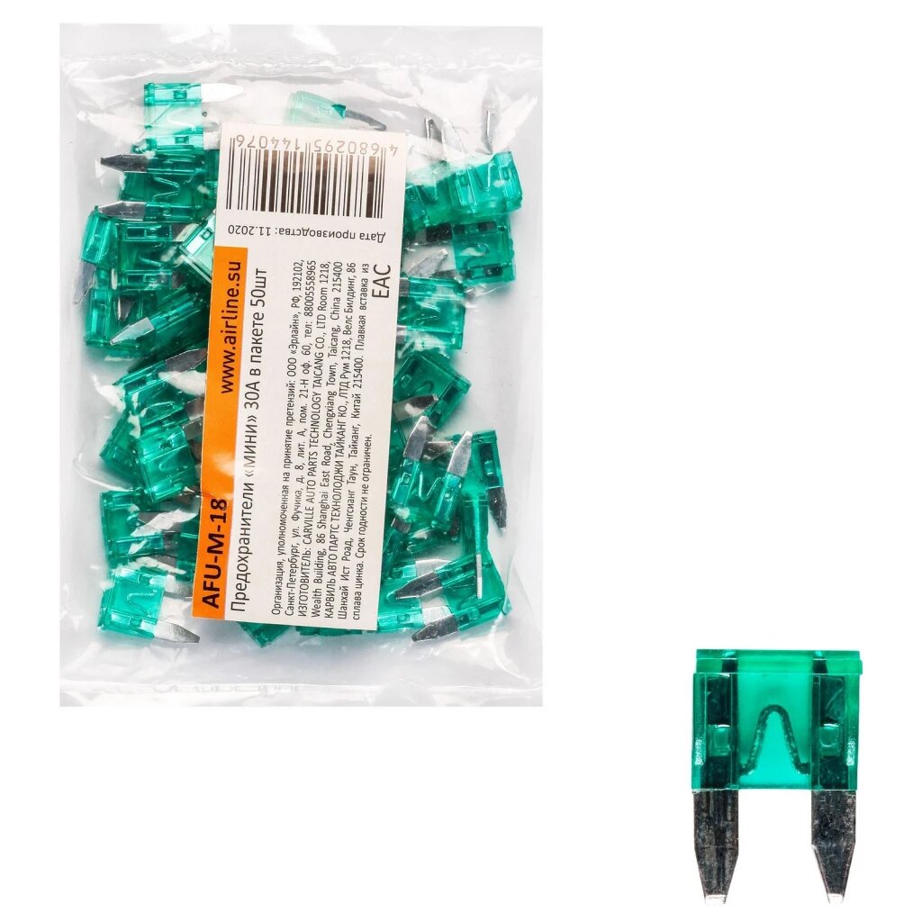Предохранители мини 30A в пакете 50шт (AFU-M-18), AFUM18 AIRLINE AFU-M-18
