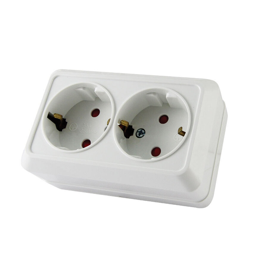 Розетка двойная 2П+З открытой установки с з/ш IP20 16А, белый "Ладога" TDM