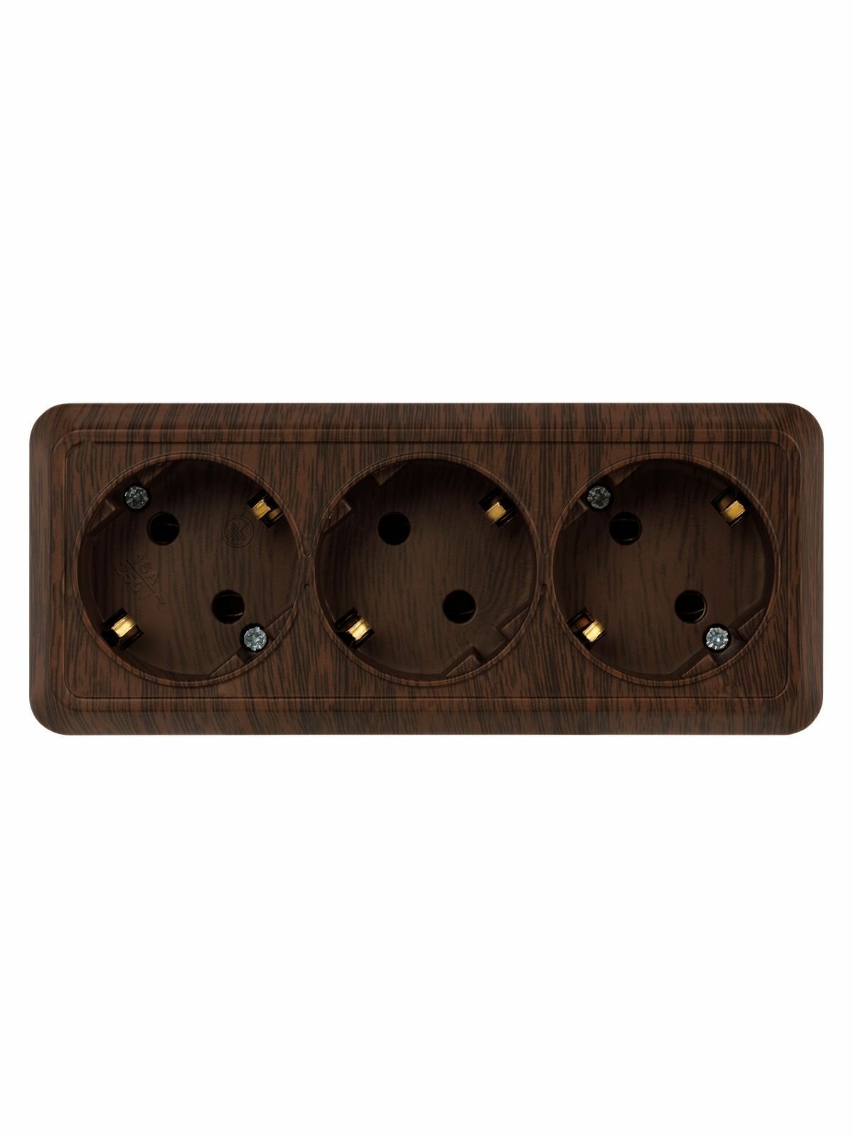 Купить Розетка 3-х местная горизонтальная 2П+3 открытой установки IP20 16A бук "Ладога" TDM