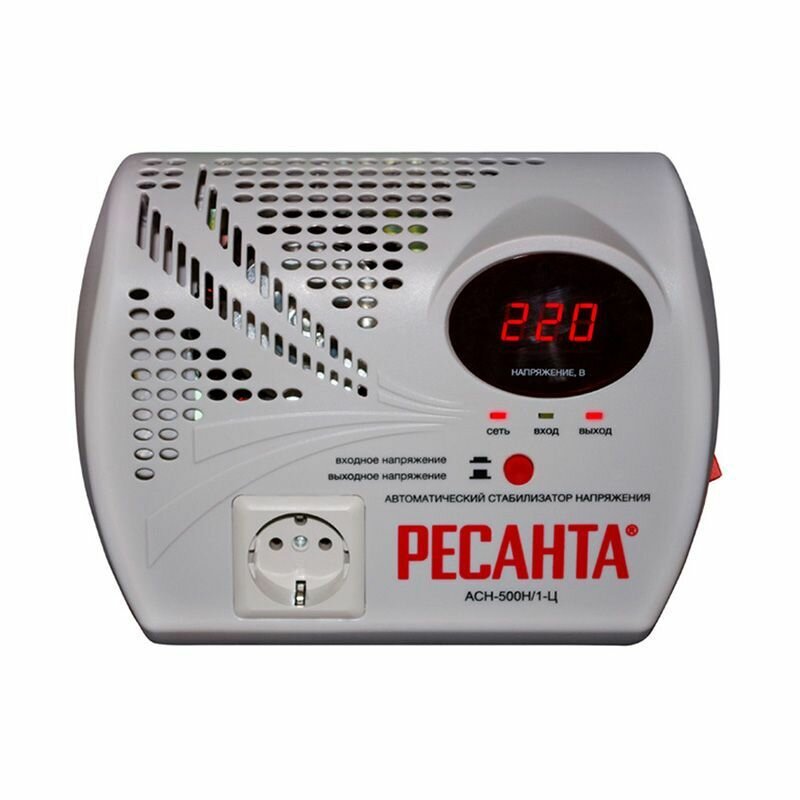 Стабилизатор АСН - 500Н1/1-Ц Ресанта (однофазный, 140 В - 260 В, 2.6 А, 0.5 кВт, 50 Гц, розеток - 1, без дисплея)
