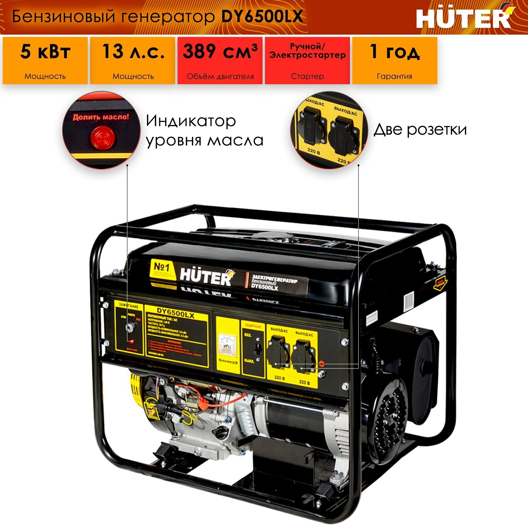 Бензиновый генератор Huter DY6500LX (5500 Вт) интересное: