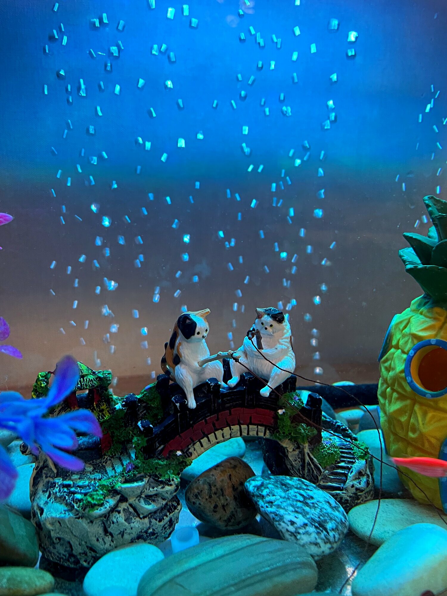 Аквариумная декорация JustMarket "Котик-рыбак", пластик, имитация животного