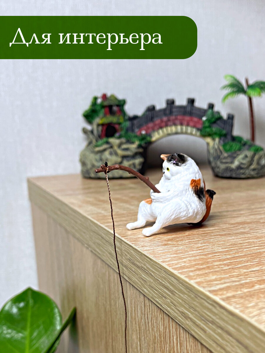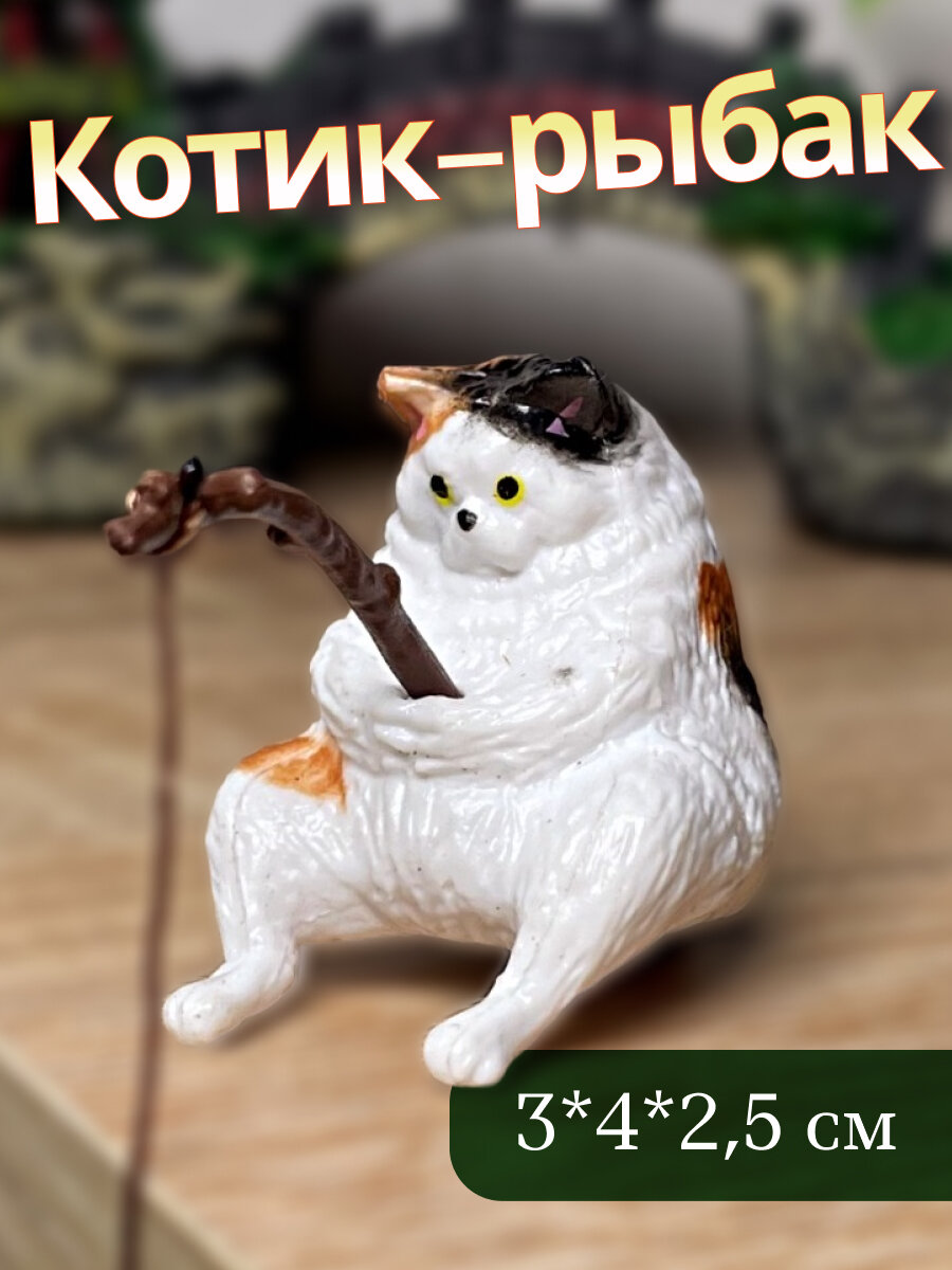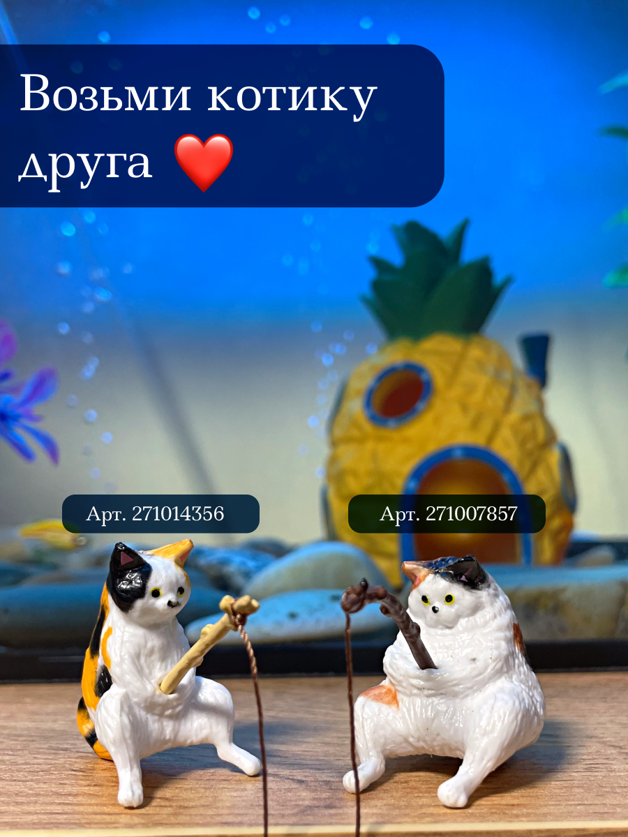 Аквариумная декорация JustMarket "Котик-Рыбак", пластик, 4х3х4 см, имитация