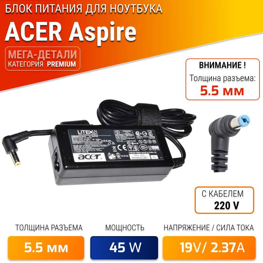 Блок питания для Acer 19V 2.37A 45W / A13-045N2A / PA-1450-26 / ADP-45FE / ADP-45HE / Acer ex2540 / Aspire 3 A315-42 интересное: