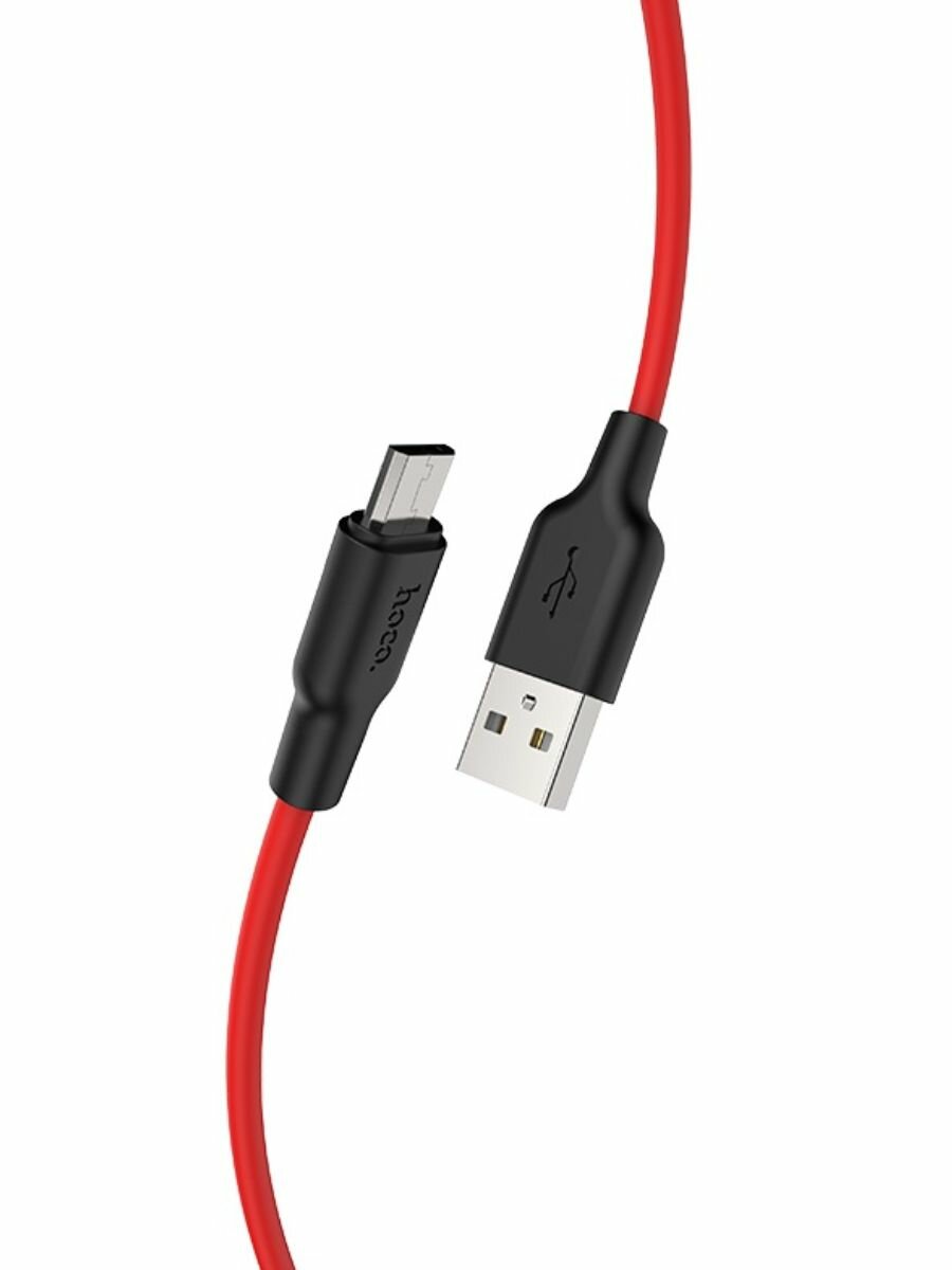 USB кабель HOCO X21 Plus Silicone MicroUSB, 2.4А, 1м, силикон (красный/черный)