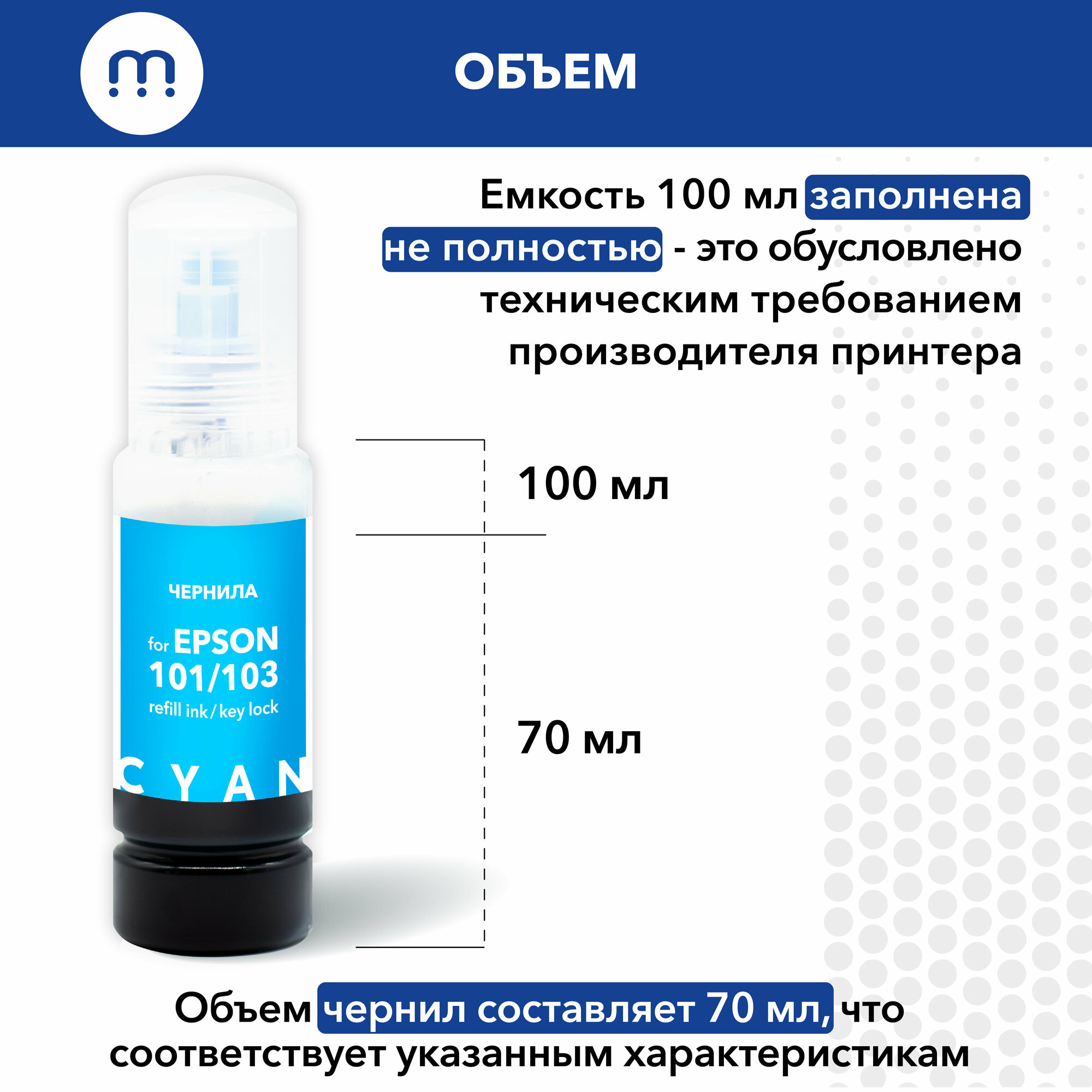 Купить Чернила для принтера Epson 101/103 (L1110-L5290 и L1250-L6290), система Key Lock, голубой (C13T03V24A/C13T00S24A), 70 мл